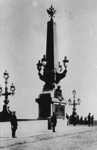 TROITSKY BRIDGE (Trinity Bridge; in 1918-34 Ravenstva Bridge, in 1934-99 Kirovsky Bridge), across the Bolshaya Neva River, connecting Suvorova Square with Troitskaya Square (hence, the name) and Kamennoostrovsky Avenue. Voskresensky Pontoon bridge (also known as Peterburgsky because it led to Peterburgskaya Side) was established in 1803 upstream. In 1824-27, the stone abutments for Troitsky (Suvorovsky) pontoon bridge were built here (engineer V.P. Lebedev). The lanterns of the standard lamps and cast-iron grating taken from that bridge were currently established at the entrance of Troitsky Bridge, as well as on Ioannovsky Bridge, on the right bank of Kronverkskaya Channel embankment, and on Bolshaya Dvoryanskaya Street In 1892-96, two international bids for the construction design of a permanent bridge were held (a total of 21 projects were presented). The projects of French engineer A. Eiffel and French company Batignole (engineers V. Chambrogli, R, Patouillard) won the bid, and the latter was put into practice. The bridge was built in 1897-1903 (French President F. Faure was present for the laying of the foundation) under the observation of a commission supervision body consisting of over 25 engineers and 11 architects (N.A. Belelyubsky, L.F. Nikolai, F.G. Zbrozhek, G.N. Solovyev, A.P. Pshenitsky, L.N. Benois, A.N. Pomerantsev, R.A. Gedike et al.); the members of the commission and supervision committee made a number of changes to the project. The bridge consisted of a double-sleeve opening span and five fixed spans with trussed girders of arched bottom chords. The bridge contained caisson piers and spill-through abutments; the footing was faced with granite. Decor was performed in the Art Nouveau style. In 1900-03, a three-span granite arcade was constructed on the right bank (engineer G.G. Krivoshein) together with a granite embankment. In 1893-1903, a floating bridge was being launched downstream. In 1965-67, the pivot span was replaced with a single-leaf bascule span (engineers G.M. Stepanov, K.P. Klochkov, architect Y.I. Sinitsa). The left-bank span was bridged over with a reinforced concrete girder containing granite-faced frontal curved beams. During the construction a temporary bridge with a opening span was built upstream. The silhouette of Troitsky Bridge is remarkable for its perfect proportions. In 2001-02, the bridge was reconstructed: the components of the girders and the floor of the bridge were replaced or reinforced; the decor was also restored (engineer T.Y. Kuznetsova, Y.Y. Krylov, architect O.A. Kuzevanov). The bridge is 578.3 metres long in the cross-section of the balustrades and 23.6 metres wide. References: Кривошеин Г. Г. Альбом работ по постройке постоянного через р. Большую Неву Троицкого моста, дамбы и набережных между Кронверкским и Сампсониевским мостами, 1897-1903. СПб., 1903; Синица Ю. И. Реконструкция трех невских мостов // СиАЛ. 1966. № 1. С. 24-26. D. Y. Guzevich, S.Z. Suponitsky, N.M. Kozlovskaya.