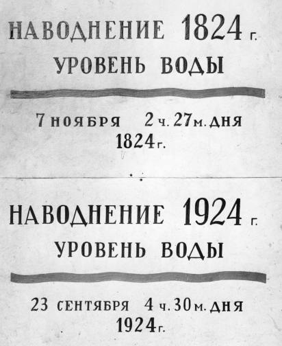 FLOODS. Raises of water over 160 centimetres above the zero-level of Kronstadt Tide-gauge or over 150 centimetres above the zero water level of the Neva River (the water post is located near the Mining Institute). Approximately 290 floods have been registered in the history of St. Petersburg. They are mainly caused by the occurrence of combers, especially those crossing the Baltic Sea from south-west to north-west. The formation of a comber wave is caused by a lowering of atmospheric pressure in the centre of the cyclone and by the winds blowing to the centre of the cyclone. Western winds blowing from the Gulf of Finland and form a pileup of water and seiches at the mouth of the Neva - fluctuations of the total mass of water in the gulf trying to balance out, having been piled up, also contribute to the formation of floods. The role of seiches in the formation of the Neva floods is especially great when cyclones move together with an interval of 24-28 hours. In winter, floods may be caused by ice jams - accumulations of bottom and beaten ice blocking the way for water coming from upriver. Floods in separate parts of the city are determined by the height of their location. The districts bordering upon Nevskaya Bay, the Bolshaya Neva and the canals of the western part of St. Petersburg are the first to be flooded. With an increase in water levels, the water flows towards the east, covering territory along the coast to the former coastline of the ancient Baltic Sea, which serves as a boundary of the flood zone during the severest floods. At the beginning of the 18th century flooding occurred when the water level rose 130-150 centimetres above the zero water level in the Neva at the beginning of the 18th century. Today flooding occurs when the water level reaches 170-180 centimetres above the zero mark. This is explained by the increasing height of the city as a result of digging canals, deepening rivers and the bottom of the Gulf of Finland, the construction of the embankments and paving and asphalting of the streets etc. The flooding of parks, gardens and thinly populated districts starts when the water level reaches 180-200 centimetres and residential areas start to flood when the water level reaches 200-210 centimetres above the zero mark. During catastrophic flooding an area exceeding 100 km2 is immersed. The speed with which the waters rise on the Neva, the duration of the high level and abatement of the flood are dependant on its intensity. With a flood of 150-200 centimetres, the water rises at a rate of 22.5 cm/h, it subsides at 15 cm/h. The most rapid flooding was registered on 15 September 1929 and 1 October 1994, with the waters of the Neva rising at a rate of 100 cm/h. The duration of a flood varies from eight hours to two-three days. On average it is about 24 hours. On average it takes about eight to nine hours for the water to reach its high level mark. As a rule, the average time for abatement is 1.1-1.5 times slower than that of the inundation. Flooding on the Neva may occur at any time. 138 floods out of 267 happened in October-November during the period 1703-1986. This is the result of increased cyclonic activity during this season. Isolated instances of floods have been registered during the February to July. The six most substantial floods should be noted. In August 1703, the water in the Neva rose 200 centimetres. The second important flood happened on 21 September, 1777 (310 centimetres above the zero water mark). It was one of the most sudden floods in the speed of rising and caused many victims. The whole territory of St. Petersburg was flooded, many buildings and constructions suffered damage. The Summer Garden was seriously damaged. The most catastrophic flood in the whole history of St. Petersburg occurred on 19 November 1824. Water rose 410 centimetres above the zero watermark, the whole city was flooded with the exception of Liteinaya Part, Rozhdestvenskaya Part and Karetnaya Part. According to the official data, 208 people perished, according to unofficial data, up to 14,000 people perished, 324 buildings were completely destroyed and 3,257 buildings were damaged. Only 12 vessels survived out of 97 vessels lying in the harbour. The total damage cost approximately 20 million roubles. This flood was immortalized by Alexander Pushkin in The Bronze Horseman, A. S. Griboedov and F. V. Bulgarin et. al. also wrote about it. Another catastrophic flood (369 centimetres above the zero water level) occurred on 23 September 1924, when 61% of the territory of the city was flooded, up to 600 people perished, 19 bridges were damaged. Here and there the depth of the floodwaters achieved 2-2.5 metres and the wind speed achieved 40-42 m/sec. The last two substantial floods occurred on 15 October 1955 (282 centimetres above the zero water mark) and on 29 September 1975 (270 centimetres above the zero water mark) but did not cause substantial damage. The high water mark of catastrophic floods is marked by commemorative plaques with 26 marks surviving from the flood of 1824 and 24 marks surviving from the flood of 1924. The maximum level of rising of water is also fixed at the opening of Nevsky Gates of St. Peter and Paul Fortress and on the granite obelisk installed in 1971 on the bank of the Moika River near Siny Bridge. In some years there is no major rising in the amount of water in the Neva. The maximum number of floods to have been registered in one year was ten, which happened in 1983. The last instance of flooding was registered in the early 1990s, the last rise of water levels in the Neva in the 20th century happened in 1999. There is a certain regularity in the distribution of the floods. The probability of a flood with the level of over 185 centimetres above the zero water level increases in the years with minimum sun activity and on the ascending line of the 11-year Sun cycle. The influence of the century and half-century Sun cycles is also traced to the incidences of c