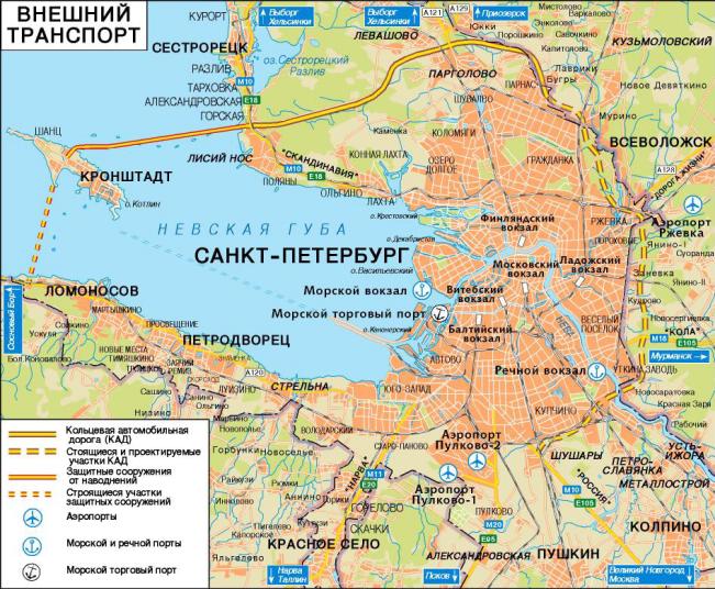 PETERSBURG TRANSPORTATION HUB. European Russia's largest transport centre. St. Petersburg's unique geographical location, with its accessibility to sea, river and railway routes, as well as major highways, allows for the meeting of important logistic objectives, particularly providing cargo and passenger transportation and implementing integration of transition processed. The St. Petersburg Transportation Hub is a unified enterprise; the key condition to its coordination is close interaction between all aspects, the strategic assignment of central locations and state-of-the-art equipment. Within the structure of the St. Petersburg Transportation Hub, these tasks are accomplished by the outer long-distance route, and the inner local (including suburban) transport systems. The former is comprised of sea, river, railway, motor, air and pipeline transport. The St. Petersburg Transportation Hub's international transport corridors system has three Europe-Asia corridors, including the North-South, the Transsib, and the Northern Sea Route, as well as regional corridors, going through the Northwestern Region. Until 1996, sea transport was carried out by the Baltic Shipping Company; and since 2003, there have opened 40 shipping companies. The St. Petersburg Sea Port includes the former commercial port base (today Sea Port), the Lesnoy Port, the Passenger Seaport, the Lomonosovsky, Kronshtadtsky, and Gorskaya minor ports, mooring shipyards, as well as four cargo districts and over 20 terminals. Due to modern passenger vessels' deep drafts, passengers can also disembark via passenger berths along the port's second cargo section. By 2003, the turnover of exported goods amounted to 37 million tons a year. Cargo and passenger transportation is also provided by railway, motor and river transport. About 140 enterprises provide transportation by water (the largest of them is the Northwestern Shipping Company). Passenger terminals are located at the river-boat station and the berth on Makarova Embankment (opposite building No.28). Cargo and passenger transportation, as well as sightseeing tours, are available along river waterways, and also along the sea outlet used by cargo transport and passenger lines. Motor transport provides connections to regional and international transport. Its share in the transportation turnover of the Petersburg Transportation Hub is about 30%. About 7,000 economic entities with various types of ownership operate in the automobile transportation service market. Motor transport includes buses, taxis and long-distance freight transport (refrigerator trucks, goods wagons, road-trains). By 2003, enterprises providing automobile transportation services in St. Petersburg delivered about 9 million tons of export and import goods, and about 400,000 passengers on international transport lines. The St. Petersburg main railroad enterprise is the Oktyabrskaya Railway. The total length of the St. Petersburg Transport Hub's railway lines equals 423 km (about 100 railway stations); about 90% of the lines are electrified. Air transportation is provided by the Pulkovo Air Company, providing over 30 scheduled flights to more than 80 cities throughout the world. The company has 14 TU-154M airplanes, 10 TU-154B airplanes, 11 TU-134 airplanes and 9 IL-86 airplanes (2003).The pipeline operator is the Baltiiskaya Pipeline System, which operated the transportation of petroleum and mineral oils to Russia and abroad, encompassing a network of pipelines, berths and an oil-tanker terminal. The international North-South Corridor, along the Finland - St. Petersburg - Moscow - Caspian Sea - Gulf States route, unites railway, motor and waterway lines. The Transsib and Northern Sea Route corridors have branches in the direction of St. Petersburg, and passes through the St. Petersburg Transport Hub. Means of transportation to, from, and through St. Petersburg include travel on river, railway, bus, trolley-bus, tram, motor transport and Metro. River transportation is carried out from river-boat station berths and temporary berths on the Palace Embankment, near the Summer Garden, and at the St. Peter-and-Paul Fortress, as well as others. Local lines (including services to Petrodvorets, Kronshtadt) are serviced by Raketa, Voskhod and other motor ship firms. Local railway services are provided by ER Electric Trains, running from five railway St. Petersburg stations. The main directions are the Karelian Isthmus, Luga - Oredezh, Nevdubstroy - Syasstroy, Lomonosov, and others. About 23% of transportation services are provided by motor transport along the St. Petersburg Transport Hub's interurban roadways. By 2003, there were 3,320 km of streets and roads, including 1,600 km of highways, 405 bridges, 95 traffic intersections and 26 pedestrian tunnels in St. Petersburg . By 2003, about 13% of total public travel was carried out by trolley-buses and about 16% by trams. By 2003, the share of trolley-bus and tram transport was reduced within the St. Petersburg Transportation Hub's system, turning into delivery transport for underground stations and markets. The marshrutki (jitney) van service developed quickly in 1995-2003 (by 2003 there were about 600 routes). In 1980-2000, the Metro network became St. Petersburg's main local transport system. The Metro is a priority in the comprehensive development of the St. Petersburg Transportation Hub.
