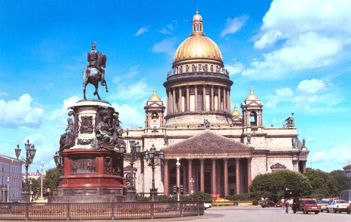 ST. ISAAC'S CATHEDRAL, located at 1 St Isaac's Square, an architectural monument of late Classicism and the largest church in St. Petersburg. The first wooden church, which stood at the approximate location of the Bronze Horseman now, was consecrated in 1707 in honour of St. Isaac of Dalmatia, on whose feast day (30 May, old style) Peter the Great was born. In 1712-22, it was replaced with a stone church designed by architect G. I. Mattarnovi in the Petrine Baroque style, and completed in 1727. The main iconostasis was done by I. P. Zarudny. The construction of the cathedral was completed in 1739-42 by architect P. A. Trezzini. On account of the foundations sinking, services were discontinued in 1759. In 1768-1802, on the newly created St Isaac's Square, a cathedral faced with marble and featuring three side-altars and a belfry was built in the Classicist style (according to the project by A. Rinaldi, builders A. F. Wist, and from 1798 - V. Brenna). The new cathedral was not congruent with the architecture of central St. Petersburg, and in 1809, an architectural contest was announced. The new cathedral was built in 1818-58 (architect A. A. Montferrand) and consecrated as a metropolitan cathedral. The construction was supervised by a special commission; from 1841 prominent Russian artists (F. A. Bruni, K. P. Bryullov, V. K. Shebuev) and sculptors (I. P. Vitali, P. K. Klodt, A. V. Loganovsky) worked on the decor of the church. The building is adorned with four eight-column porticoes and crowned with a metal gilded cupola on a dome drum, encircled with monolithic granite columns. The height of St Isaac's Cathedral is 101.5 metres, its dimensions (with porticoes) are 111.5 х 97.6 metres. Along with SS. Peter & Paul Cathedral and the Admiralty, St Isaac's Cathedral is a major focal point of the St. Petersburg skyline. Outside and inside, the building is faced with marble of different shades; the interiors are decorated with malachite, lapis lazuli, gilded bronze and mosaics. The stained-glass window behind the altar was created by craftsman M. E. Einmiller to the drawing of L. von Klenze in Munich. St Isaac's Cathedral treasured the revered Icon of Our Lady of Tikhvin and Icon Our Lady of Korsun and the Icon of the Holy Face by F. F. Ukhtomsky (1693). Annually, on 30 August, a religious procession takes place from the St. Isaac's Cathedral to Alexander Nevsky Lavra. From 1896, the cathedral has had a fraternity that ran several charitable establishments; from1911, it was also the home of the Society of Gonfaloniers. In 1928, St Isaac's Cathedral was closed down. In 1930-37, it housed the Anti-Religion Museum. From 1937, it has been a memorial museum. During the Great Patriotic War of 1941-45 the cathedral was damaged, and restoration works were completed in 1947-51 and in 1954-63 (architect A. L. Rotach). In 1992, services started to be held again on an irregular basis, and since August 2002 regular services have been held in the left side-altar. In 2001-03, the facade of the Cathedral was restored. St Isaac's Cathedral gives its name to St. Isaac's Square and the adjacent park. References: Бутиков Г. П., Хвостова Г. А. Исаакиевский собор. 2-е изд. Л., 1979; Антонов В. В., Кобак А. В. Святыни Санкт-Петербурга: Ист.-церков. энцикл. СПб., 1994. Т. 1. С. 105-109; Толмачева Н. Ю. Исаакиевский собор. СПб., 2003. V. V. Antonov.