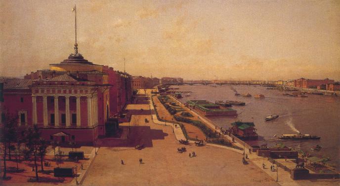 АДМИРАЛТЕЙСКАЯ НАБЕРЕЖНАЯ [в 1918-44 - наб. Рошаля, в честь участника рев. движения С. Г. Рошаля (1896-1917)], между Дворцовым пр. и пл. Декабристов, названа по Гл. Адмиралтейству. Проложена в 1873-74 (арх. В. М. Карлович, С. С. Селянинов) на терр. упраздненной Адмиралтейской верфи. В 1875 устроен широкий бульвар. На А. н. - Дворцовая и Петровская пристани (1820-24, инж. А. Д. Готман), расположенные напротив вост. и зап. павильонов Гл. Адмиралтейства. Перед ними в 1909 и 1910 были установлены скульпт. группы "Петр I спасает утопающих в Лахте в 1724 г." и "Царь-плотник" (скульп. Л. А. Бернштам, арх. А. И. фон Гоген, демонтированы в 1918, в 1996 установлена копия "Царя-плотника", подаренная СПб. пр-вом Нидерландов). В 1880-х гг. А. н. застроена доходными домами: на участке д. 4 в 1886-87 сооружены дом и театр В. А. Панаева (арх. Д. К. Пруссак), здесь в 1895 состоялся петерб. дебют Ф. И. Шаляпина. В 1917 дом сгорел, на его месте в глубине участка построена школа. Д. 8 - быв. дворец вел. князя Михаила Михайловича (1885-91, арх. М. Е. Месмахер), в сов. время здесь размещалось Гл. управление торговли Л., с 1998 - Рос. страховое нар. об-во (РОСНО). Д. 10 - доходный дом О. Н. Рукавишниковой (1880-81, арх. А. Ф. Красовский, В. Р. Курзанов), в 1890 и 1893 здесь жил П. И. Чайковский, в 1906-10 - один из основоположников сейсмологии, геофизик князь Б. Б. Голицын. В сов. время здание занимало Ген. консульство ГДР. В домах 12 и 14 (перестроены в 1912-13, арх. А. В. Друкер, К. К. Тарасов) до 1917 располагались Дворянский банк и Крестьянский банк. Лит.: Соловьева Т. А. К причалам Адмиралтейской наб. СПб., 1999. Б. М. Кириков.