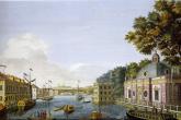 "Проспект по реке Фонтанке от Грота и Запасного Дворца". Гравюра Г. А. Качалова с рис. М. И. Махаева. 1753.