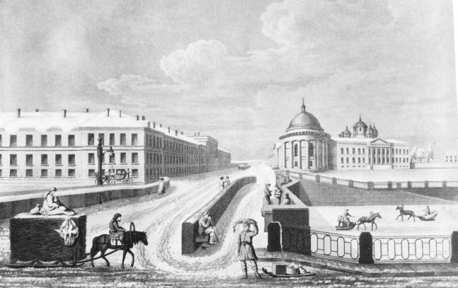 RIZHSKY AVENUE, between Lermontovsky Avenue and the Ekateringofka River. Since 1776, it was known as Izmailovskaya Street (after Izmailovsky Life Guard Regiment quartered nearby), Izmailovsky Avenue and Novoizmailovsky Avenue, St