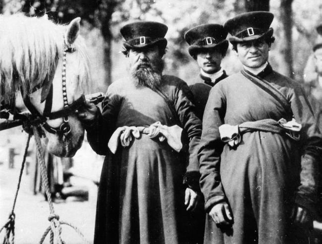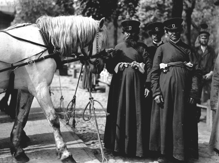 CABMEN, appeared in St. Petersburg in the city's early days (decree of 1705 "On Taxing Cabmen"), at about the same time cab driving grew into a business practised as a rule by peasants. By 1745 there were 3,000 cabmen in St. Petersburg. Traffic regulations for cabmen appeared in 1705, 1732, 1745, and 1783 and later on. In 1739 special guards were posted on the streets to monitor observance of traffic rules. Quite a number of cabmen lived in coachman settlements around Ligovsky Avenue and the present Marata Street, in the vicinity of St. Alexander Nevsky Laura, where in the middle of the 19th century a Coach unit was set up, and other settlements, as well as in yam settlements (short for Russian yamschik - coachman) in the St. Petersburg suburbs (Yam-Izhora and others), where resided the coachmen who served on postal carriages travelling to other cities. There were two types of cabmen - draymen (freight) and cab-drivers (for riders, passengers). Passenger cabmen (fiacre-drivers) were in turn classed into "stock exchange drivers" (waiting for "big shots" in certain locations) and "no special location" ones, also called "vankas" (diminutive for the name Vanya). "Vankas" mostly worked for a "master". There were "scorchers" ("dashers") among "stock exchange" cabmen, riding gentlemen for fun for a considerable fee. Starting in 1783 the Police department (Uprava Blagochiniya - police authorities in Russian cities and governorates in the 18th -late 19th centuries) began issuing "cabman tickets" (business permits), as well as a leather tag with the fiacre-driver’s number and city district, to which the cabman was assigned. The tag was sewn on the jupe that was a cabman's uniform). A yellow girdle and a yellow topped cap were the cabman's insignia (the cab also was coloured yellow). By the late 18th century 5,000 permits were issued. Cabmen paid a tax of two roubles annually; owners of cab business paid ten roubles annually. The droshky, fiacres, carriages, sleighs - were the cabmen's transportation in the winter, in the middle of the 19th century there appeared four-wheeler flies. By the middle of the 19th century circa 6,000 cabmen worked in St. Petersburg in the summer, and 7,500 in the winter. The speed limit was 10 versts (1 verst = 3,500 ft.) per hour. In winter cabmen and coachmen could warm up in the so-called "heaters", or pavilions with a heater inside. From the late 18th century there appeared "cabman inns" offering lodging for coachmen and providing stalls for horses (the well-known inns in the 19th century were Ryazan Inn in Kuznechny Lane, Khiva Inn on Glazovaya Street and others). Cabmen used to wait for passengers at train stations, hotels, at intersections etc., "dashers" - at the State Duma building, at the corner of Troitskaya Street and Nevsky Prospect, and other locations. Since the late 18th century to the 19th the so-called "veyki" (or "chukhny") - winter sleighs for holiday drives were popular; this business was run by migrant Karelians and Finns (called in Russian Chukhnya), (hence the name). In 1876 new business regulations were adopted. Only persons over 18 years old could be issued the cabman's card (certificate); cabmen had to pass an exam on city streets and sights, traffic rules, and horse handling. The exams were presided over by police officials and City Duma members. Upon the appearance of omnibuses (1847), horsecars (1863) and trams (1907) cabmen retained their services: in 1900 there were over 16 thousand fiacres and 2,500 drays in St. Petersburg, however by 1914 their number decreased twofold. Draymen and cab-drivers existed in Leningrad all the way through into the late 1930s. In 1980, fiacre-drivers appeared in the city as a tourist attraction. In 1999 the governor of St. Petersburg issued a direction on cartage and rider transport traffic (alongside with bicycles and mopeds). References: Петров П. П. Легковые извозчики Петербурга // БА. 1984. № 17. С. 45-56; Антонов П. А. Ямщик, не гони лошадей! // ЛП. 1986. № 1. С. 35-37; Засосов Д. А., Пызин В. И. Из жизни Петербурга 1890-1910-х гг. Л., 1991. С. 38-46. Y. N. Kruzhnov.