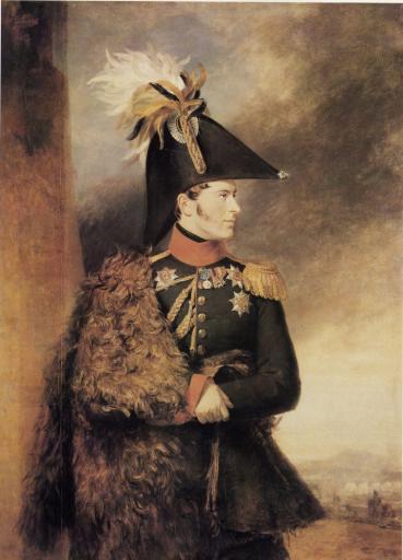 DOW George (1781-1829), an English painter, honorary associate of the Academy of Arts from 1820. He studied under T. Lawrence in the Royal Academy of Arts in London from 1796 to 1810. Invited by Emperor Alexander I, he lived in St. Petersburg from 1819 to 1829, collaborating with artists V. A. Golike and A. V. Polyakov in painting over 300 portraits of generals who took part in the Patriotic War in 1812 and foreign campaigns of the Russian Army in 1813-14 for the Military Gallery of the Winter Palace opened in 1826, including full length portraits of Field Marshal M. I. Kutuzov and M. B. Barclay de Tolli, both painted in 1829. He also portrayed Emperor Alexander I and Empress Elizaveta Alexeevna, both pictures painted in 1825 and exhibited in the State Russian Museum, as well as other members of the Emperor's family. In his portraits, he combined realistic and romantic representation of characters.
