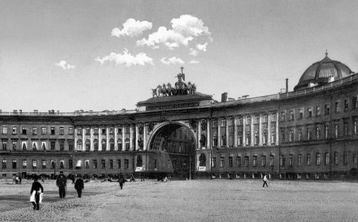 Церковь вмч. ГЕОРГИЯ ПОБЕДОНОСЦА при Генеральном и Главном штабеОсвященная 1 февраля 1822 церковь размещалась на четвертом этаже дворового флигеля и была украшена коринфскими колоннами желтого стюка. Высота церкви с куполом достигала шести сажень. На ее стенах висели копии религиозных картин из Эрмитажа, сделанные глухонемыми художниками. Иконы в двухъярусном иконостасе написал акад. А. К. Виги. Золоченую утварь из серебра работы парижских мастеров храму подарил Александр I, побывавший в нем вскоре после освящения. В таком виде церковь простояла целых 70 лет. В 1889 М. А. Иванов начал ее расширение и новую отделку на средства Цесаревича и служащих штаба. Так как эта переделка церкви была связана со спасением царской семьи в Борках, то на сводчатом потолке воспроизводилась небесная карта в ночь на 17 октября 1888 с 1228 звездами из хрусталя, а на стене помещалась картина „Нагорная проповедь“ акад. И. К. Макарова, на которой был представлен Александр III с семьей. Обновленный храм был отделан под белый и красный мрамор и украшен росписью акад. В. В. Васильева и исполненными А. Федюкиным круглыми витражами. Образа написали Н. П. Шаховской и В. П. Худояров; одноярусный иконостас, жертвенник и престол сделал из мрамора Руджа, узорчатые царские врата из бронзы – завод Берто. Освящение состоялось 10 февраля 1890. Его совершил военный протопресвитер А. А. Желобовский в присутствии Цесаревича Николая Александровича. В витринах хранились ключи взятых в 1866 двух бухарских крепостей. Мраморные доски напоминали о павших с 1807 офицерах штаба. Последним настоятелем храма был с 1902 прот. Павел Никанорович Левашов, до него 50 лет прослужил прот. Григорий Стефанович Словцов, известный проповедник. Благотворительное общество при храме содержало школу-приют для детей нижних чинов. Церковь закрыта в 1917 и через шесть лет разобрана. Ныне в здании – военное учреждение. После реставрации, начатой в середине 1990-х, 4 апреля 2002 состоялся первый молебен, а 19 июня – освящение храма митрополитом Владимиром. Архивные источники РГИА. Ф. 797. Оп. 2. Д. 8220. Литературные источники ИСС. Вып. 7. 1883. С. 296–297. Церковь Генерального и Главного штаба… СПб., 1890. Жилинский Я. Г. Здание Главного штаба. СПб., 1892. С. 22–25. Цитович. Ч. 1. С. 36. Периодика ВВД. 1890. № 7. С. 214–220. ПрЦВ. 1890. № 8. С. 272–273; № 9. С. 305–306. ВKГ. 1923. № 298. ЦВ. 2002. № 4. С. 16. Авторы