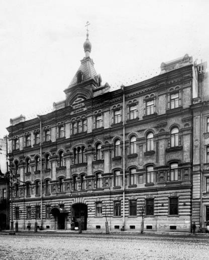 Церковь св. ИОАННА ПРЕДТЕЧИ при Мариинско-Сергиевском приютеКогда для приюта купили новый дом, арх. Г. Б. Пранг его перестроил, создав на средства гр. Александра Петровича Толстого на третьем этаже небольшая церковь со звонницей. Она была освящена 28 декабря 1873 митрополитом Исидором (вероятно, во имя Рождества Иоанна Предтечи) в присутствии высоких покровителей. Иконы для двухъярусного иконостаса написали В. П. Худояров и С. С. Судьбинский; серебряную утварь (по рисункам архитектора) и бронзовые светильники сделал староста, серебряных дел мастер Н. А. Груздев; ризницу подарил купец И. Ф. Громов. Так как приют был задуман для крещеных еврейских детей (их было около 40), то в храме была сделана крещальня: медный чан под резной сенью, с которой свисал серебряный голубь. С 1884 в приюте стали призреваться и православные дети – в основном девочки в возрасте 5–12 лет, получавшие начальное образование. В 1898–1899 под смотрением техника М. А. Андреева был возведен четырехэтажный лицевой дом и дворовые флигели. В 1901–1902 лицевой дом был полностью перестроен по проекту гражд. инж. П. Н. Батуева, и на третьем этаже дворового флигеля 9 февраля 1903 освящена новая двусветная церковь, богато украшенная лепкой, но с прежним убранством и утварью. Посреди главного фасада возвышалась шатровая звонница. Вскоре храм, который славился своим хором, пострадал от пожара и по восстановлении был вновь освящен 22 февраля 1905 митрополитом Антонием (Вадковским). В 1913 при приюте (считавшемся образцовым) основана Женская учительская семинария, воспитанницы которой ходили в приютский храм. С 1896 до закрытия в 1919 в нем служил о. Иоанн Петрович Лавровский. Ныне в здании жилые квартиры. Архивные источники РГИА. Ф. 768. Оп. 2. Д. 1228; Ф. 796. Оп. 183. Д. 440. ЦГИА СПб. Ф. 5513. Оп. 102. Д. 9518; Оп. 131. Д. 42; Ф. 542. Оп. 1. Д. 95, 1066. Литературные источники ОИАХ. 1874–1875. С. 60. ИСС. 1878. Т. 6. С. 440. Троицкий. С. 114–118. ЛМХ. Вып. 6. С. 112. Периодика Голос. 1873. № 358. ЦЛДБ. 1873. № 39. С. 202. ЦОВ. 1874. № 20. С. 4–5. ВПГ. 1905. № 45. Авторы