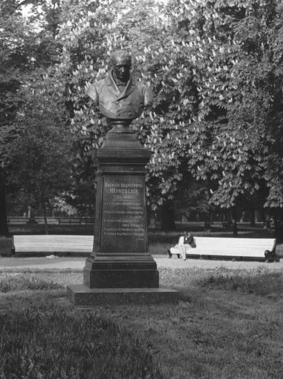 Вопрос о сооружении бюстов вновь был поднят в начале 1883 г. в связи с приближающимся 100-летним юбилеем В.А. Жуковского. Друг Жуковского, известный терапевт К. К. Зейдлиц, в 1883 г. выпустил второе издание биографии поэта и весь доход от продажи книги предложил Думе для установки памятника поэту. Н. Л. Бенуа поручил проектирование памятника своему помощнику архитектору А. С. Лыткину. Используя имеющийся иконографический материал, в том числе слепок с прижизненного бюста поэта работы Викмана, живописный портрет Жуковского, созданный немецким художником Т. Ш. Гильдебрандтом, скульптор В. П. Крейтан выполнил модель бюста. Тексты надписей для постамента подобраны Комиссией по народному образованию.