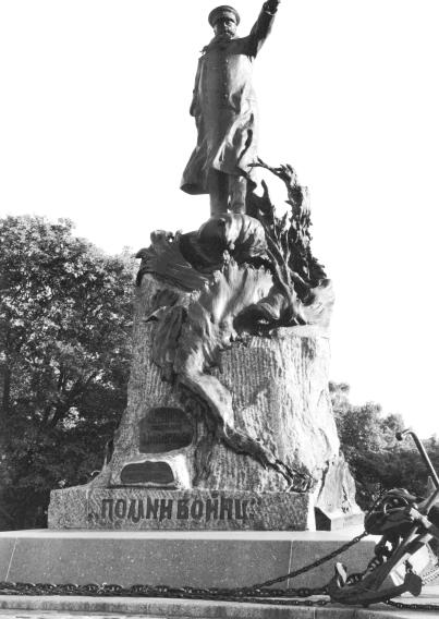 Макарову С. О., памятникРубрикатор / Памятники Санкт-Петербурга/1860 - 1917 Адрес: г. Кронштадт, Якорная пл. Скульптор: Шервуд Леонид Владимирович (1871-1954) Открыт 24 июля 1913 г. Материалы: бронза – скульптура, декоративные детали; гранит кованый и полированный – постамент; чугун – ограда, якоря. Надписи: на постаменте с лицевой стороны накладные бронзовые доски с текстом рельефными знаками: Адмиралу / Степану Осиповичу/ Макарову./ В 1911 году камень этот по Высочайшему / повелению поднят из воды в настоящем виде /на рейд Штандарт и передан для сего памятника / Памятник освящен 24 июля 1913 года в / присутствии Его Императорскаго Величества / Государя Императора Николая II; ниже, на цокольной части постамента, врезными знаками: Помни войну; на боковых гранях – накладные бронзовые рельефы с текстами. Справа: Спи северный витязь, / Спи честный боец, / Безвременно взятый кончиной. / Не лавры победы / терновый венец / Ты принял с бесстрашной дружиной. / Твой гроб броненосец, /Могила твоя холодная глубь океана, /И верных матросов родная семья / Твоя вековая охрана. / Делившие лавры, отныне съ тобой, / Они разделяют и вечный покой. / Ревнивое море не выдаст земле / Любившаго море героя. / В глубокой могиле, в таинственной мгле / Лелея его и покоя. И ветер споет панихиду / Над ним, заплачут дождем ураганы, / И саван разстелют покровом густым / Над морем ночные туманы, / И тучи, нахмурясь, последний салют / Громов грохотаньем ему отдадут; ниже, на основании рельефа литыми знаками: Гибель Петропавловска; слева на основании рельефа: Взрыв турецкаго сторожевого судна / Интибах / катерами парохода Константин. На тыльной стороне постамента под накладным бронзовым рельефом: Ермак в полярных льдах Идея сооружения памятника С.О. Макарову возникла вскоре после гибели адмирала в 1904 г. В 1910 г. на собрании, посвященном памяти адмирала, решено обратиться к императору за разрешением об открытии повсеместной подписки на сооружение памятника. Образован Комитет по сбору пожертвований, составляющих 1/4 процента от всех видов жалования команд и экипажей в течение года. Одновременно объявлен конкурс на лучший проект памятника. Проект скульптора А.В. Шервуда принят для дальнейшей разработки и исполнения. Полнофигурный скульптурный портрет адмирала, отлитый в бронзе, установлен на гранитную скалу, в верхней части которой укреплена стилизованная бронзовая «волна», напоминающая восточного дракона. На трех сторонах постамента – рельефы, посвященные эпизодам биографии ученого и флотоводца: взрыв турецкого судна во время русско-турецкой войны 1877-1878 гг., арктическое плавание ледокола «Ермак», изобретенного и построенного под руководством Макарова; гибель броненосца «Петропавловск», на котором находился командующий Тихоокеанским флотом в начале русско-японской войны 1904-1905 гг. Бронзовая скульптура и барельефы отлиты на заводе Карла Робекки. В качестве постамента памятника использован гранитный монолит, затонувший на рейде Штандарт у острова Тухольм в начале XIX в., а затем поднятый и доставленный в Кронштадт в 1911 г. Местом установки памятника выбрана площадь перед Морским собором, в сооружении которого С.О. Макаров принимал самое деятельное участие. Высота скульптуры — 3,55 м, высота постамента — 5 м. Персоны