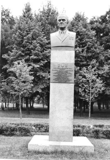 Пилюгину Н. А., памятникРубрикатор / Памятники Санкт-Петербурга/1917 – 1991 Адрес: Московский парк Победы, Аллея Героев Скульптор: Никифоров Виктор Николаевич (род. 1937) Архитектор: Сохин Виталий Антонович (1925-1995) Открыт 16 мая 1983 г. Материалы: бронза — бюст, текстовая доска с изображением наград; гранит серый, кованый — постамент. Подписи: на бюсте с тыльной стороны: Скульптор 1977 г. / Никифоров В.Н., “Монументскульптура” / Ленинград 1983 г. Надписи: текст доски литыми знаками: Герой Социалистического Труда / академик / Пилюгин Николай Алексеевич / за особые заслуги / в развитии науки и техники, /в создании и успешном запуске / первого в мире / космического корабля «Восток» / с человеком на борту /Указом Президиума/Верховного Совета СССР/от 17 июня 1961 года награжден / второй золотой медалью «Серп и Молот» На родине Героя Социалистического Труда, дважды награжденного медалью «Серп и Молот», устанавливался бронзовый бюст героя. В соответствии с Постановлением Совета Министров СССР от 11 июня 1973 г., Ленгорисполком в 1974 г. принял решение о создании в Ленинграде аллеи дважды Героев Социалистического Труда. Бронзовые бюсты стали устанавливать на центральной аллее Московского парка Победы, ставшей продолжением основанной в 1948 г. Аллеи Героев с бюстами дважды Героев Советского Союза, участников Великой Отечественной войны. Проектные предложения по установке новых бюстов на Аллее Героев выполнил архитектор В. Д. Кирхоглани. Проектирование памятников-бюстов велось по заказу Министерства культуры СССР, которое назначало авторские коллективы. Отливка в бронзе производилась на заводе «Монументскульптура». Гранитные работы выполнялись либо на гранитном участке завода «Монументскульптура», либо на Ленинградском камнеобрабатывающем заводе. Памятник-бюст Н. А. Пилюгину сооружен в соответствии с Указом Президиума Верховного Совета СССР от 17 июня 1961г. Высота бюста — 1,2 м, высота постамента — 2,65 м. Персоны