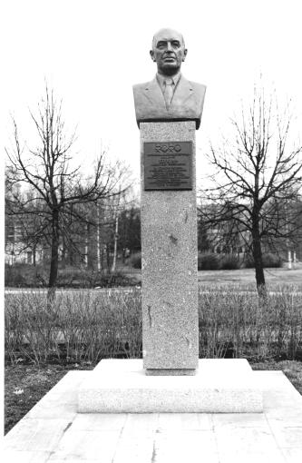 Щукину А. Н., памятникРубрикатор / Памятники Санкт-Петербурга/1917 – 1991 Адрес: Московский парк Победы, Аллея Героев Скульптор: Преображенская Елена Борисовна (род. 1943) Архитектор: Великанов Александр Александрович (род. 1938) Открыт 14 ноября 1986 г. Материалы: бронза — бюст, текстовая доска с изображением наград; гранит серый, полированный — постамент. Надписи: текст доски литыми знаками: Герой Социалистического Труда / академик / Щукин / Александр Николаевич / за большие заслуги / в развитии науки и техники / Указом Президиума / Верховного Совета СССР / от 21 июля 1975 года награжден / орденом Ленина / и второй золотой медалью / «Серп и Молот» На родине Героя Социалистического Труда, дважды награжденного медалью «Серп и Молот», устанавливался бронзовый бюст героя. В соответствии с Постановлением Совета Министров СССР от 11 июня 1973 г., Ленгорисполком в 1974 г. принял решение о создании в Ленинграде аллеи дважды Героев Социалистического Труда. Бронзовые бюсты стали устанавливать на центральной аллее Московского парка Победы, ставшей продолжением основанной в 1948 г. Аллеи Героев с бюстами дважды Героев Советского Союза, участников Великой Отечественной войны. Проектные предложения по установке новых бюстов на Аллее Героев выполнил архитектор В. Д. Кирхоглани. Проектирование памятников-бюстов велось по заказу Министерства культуры СССР, которое назначало авторские коллективы. Отливка в бронзе производилась на заводе «Монументскульптура». Гранитные работы выполнялись либо на гранитном участке завода «Монументскульптура», либо на Ленинградском камнеобрабатывающем заводе. Памятник-бюст академику А.Н. Щукину сооружен в соответствии с Указом Президиума Верховного Совета СССР от 21 июля 1975 г. Высота бюста — 1,4 м, высота постамента — 2,6 м. Персоны