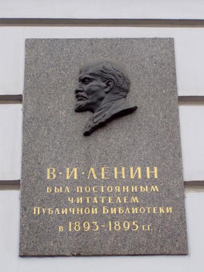 Ленину В. И., мемориальная доска1956. Арх. Иогансон К. Л., скульптор Богаткина С. П. Гранит. Невский пр., 37. Российская Национальная библиотека. (Ф-50) Персоны