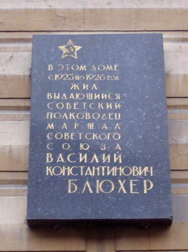 Блюхеру В. К., мемориальная доска