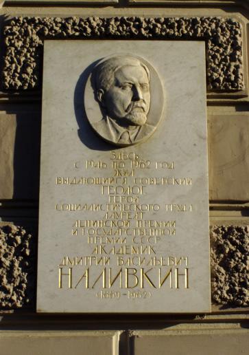 Наливкину Д. В., мемориальная доска