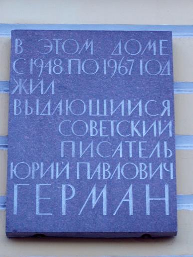 Герману Ю. П., мемориальная доска1968. Арх. Милорадович Т. Н. Гранит. Марсово поле, 7. (Ф-164) Персоны
