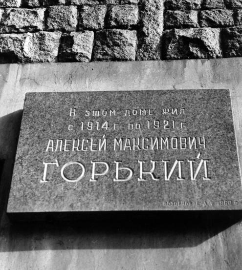 Горькому А.М., мемориальная доскаВозобновлена в 1960 г.» 1961. Арх. Егоров М. Ф. Гранит. Кронверкский пр., 23 (Ф-169) Персоны