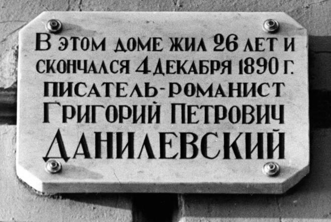 Данилевскому Г. П., мемориальная доска1911 – первоначально установлена. 1957 - возобновлена. Мрамор. Невский пр., 71/1. (Ф-172) Персоны