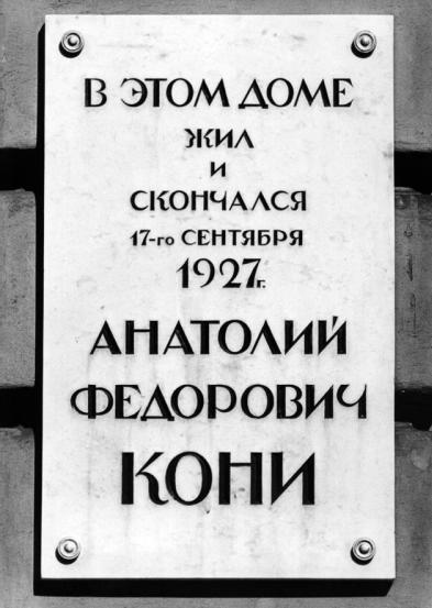 Кони А. Ф., мемориальная доска
