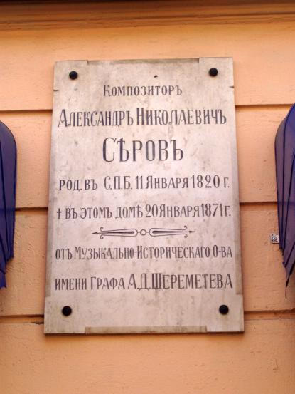 Серову А. Н., мемориальная доска1910-е гг. Мрамор. В.О., 15-я линия, 8. (Ф-244) Персоны