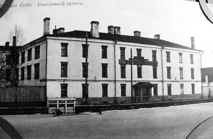 Фабрика ассигнационных бумагОснованный в 1872 г. приют для призрения сирот и детей бедных родителей всех сословий ставил своей целью подготовку грамотной и обученной ремеслам прислуги. В 1873–1878 гг. здание перестроили и приспособили по проекту архитектора А. Ф. Видова под благотворительное учебное заведение. Его частично перепланировали и соорудили дополнительную трехмаршевую лестницу в полукруглой пристройке со стороны двора. В 1977 г. под руководством арх. ГИОП Б. А. Розадеева бывшая ассигнационная фабрика была реставрирована с выявлением первоначальной композиции главного фасада, замыкающего перспективу прудов Екатерининского парка. Г. В. Семенова Авторы