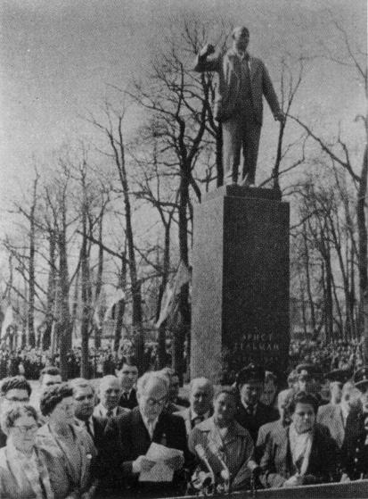8 мая. Состоялось торжественное открытие памятника немецкому коммунисту-антифашисту Эрнсту Тельману (скульптор Вальтер Арнольд). На открытии присутствовала его дочь Роза Тельман. Памятник был подарен металлургами города Айслебена в память о сохраненном немецкими антифашистами памятнике В.И.Ленина, вывезенном из города Пушкина на переплавку в Германию в годы оккупации.