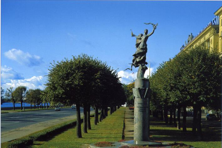 NAVAL MONUMENTS. St. Petersburg is the cradle of the Russian Navy, which explains the large number of monuments related to the history and eminent naval figures, beginning with its founder Peter the Great. The Boat House in St. Peter and Paul Fortress (1762-65, architect A.F. Wist) was built for storing Peter the Great's boat. The Main Admiralty with its sculptural finery and the ensemble of Birzhevaya Square are also dedicated to the glorification of the Russian Navy. In order to commemorate the victory at Morea peninsula in the Mediterranean during the Russo-Turkish war of 1768-74, a marble column with rostra was placed in Tsarskoe Selo (1771, architect A. Rinaldi). At the same place in the memory of the defeat of the Turkish fleet in the Gulf of Chios and Chesme Bay (June, 1770), the Chesme Column was unveiled (1774-76, architect Rinaldi, sculptor I.G. Schwarz; the lost reliefs were restored in 1996, sculptor V.G. Kozenyuk). The name of Chesme is also reflected in the obelisk (the 1770s, architect Rinaldi), the gallery of Gatchina Palace, the hall of the Great Peterhof Palace (with custom-painted naval battle scenes by F. Hackert), Viatic Palace in St. Petersburg (15 Gastello Street, 15; 1774-77, architect Y.M. Felten). In 1873, a monument to Admiral I.F. Krusenstern was opened (sculptor I.N. Schroder, architect I.A. Monighetti) in front of the building of the Sea Cadet Corps; in the same year, a monument to Catherine II was installed, bearing the sculptural portraits of sea commanders V.Y. Chichagov and A.G. Orlov-Chesmensky (sculptor A.M. Opekushin). A number of monuments were established in Kronstadt Fortress; among them, one to Midshipman A.A. Domashenko (1828, architect I.I. Charlemagne), another to Admiral F.F. Bellinsgauzen (1870, sculptor Schroder, architect Monighetti); the monument to explorer P.K. Pakhtusov (1886, sculptor N.A. Laveretsky, architect A. Silin); the monument to Admiral S.O. Makarov (1913, sculptor L.V. Sherwood, architect A.I. von Gogen). St. Nicholas Naval Cathedral in St. Petersburg (1753-62, architect S.I. Chevakinsky) and St. Nicholas Naval Cathedral in Kronstadt (1903-13, architect V.A. Kosyakov) are also tied to the history of the Russian Navy, as was the memorial Christ Our Saviour Church (1909-11, architect M.M. Peretyatkovich) which has not survived; built on the bank of the Bolshaya Neva River as a commemoration to those who died in the Sea Battle of Tsushima (1905). The events of the Russo-Japanese war of 1904-05 are also commemorated in the monument to the battleship Emperor Alexander III (1908, architect Y.I. Filotey, sculptor A.L. Ober) located in the park by St. Nicholas Cathedral and To Stereguschy monument. Some ships are permanently anchored in St. Petersburg as memorials: the Aurora cruiser (at Petrovskaya Embankment), Krasin icebreaker (beside Leytenanta Shmidta Embankment), Narodovolets submarine (in Shkipersky Channel). A memorial mark featuring the gun turret of the main armament of the cruiser Kirov was constructed near Baltiiskogo Flota Square on Morskaya Embankment. The memorial in honour of submariner A.I. Marinesko is located at 83 Kondratyevsky Avenue. On the Baltiiskikh Yung Square, a chamber memorial to the Sea Cadets of the Great Patriotic War was opened in 1999 (sculptor L.Y. Eidlin, architect V.L. Spiridonov). Another monument, dedicated to the 300th anniversary of the Russian Navy was erected on Petrovskaya Embankment near the building of Nakhimov Naval School and represents a bronze figure of Nike standing on a granite base, holding a little ship in her hand. (1996, sculptors M.K. Anikushin, M.T. Litovchenko, V.P. Petin, architect T.P. Sadovsky). Y. M. Piryutko.