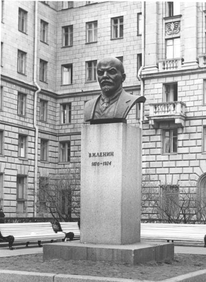 Ленину В.И., памятник (Ленина ул. на пересечении с Большим пр. П.С)Рубрикатор / Памятники Санкт-Петербурга/1917 – 1991 Скульптор: Ингал Владимир Иосифович (1901-1966) Открыт в 1957 г. Материалы: бронза – бюст, литеры; гранит кованый – постамент. Надписи: на постаменте накладными литерами: В. И. Ленин / 1870–1924 Первоначально в 1949 г. бюст В.И. Ленина был установлен в саду Смольного. Отливка бюста произведена на заводе «Монументскульптура». В 1957 г. памятник перенесен на Петроградскую сторону на улицу Ленина, где находилась одна из конспиративных квартир вождя, ставшая мемориальным музеем. Высота бюста — 1,5 м, высота постамента — 2,8 м. Персоны