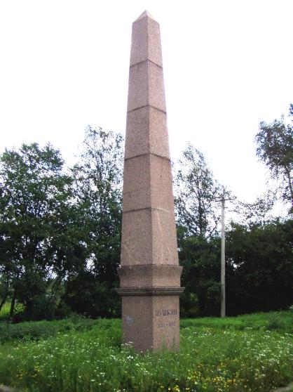 Пушкину А. С., памятник (Московское шоссе)Рубрикатор / Памятники Санкт-Петербурга/1917 – 1991 Открыт в 1957 г. Материалы: гранит. Надписи: на обелиске с лицевой стороны врезными тонированными знаками: А.С.Пушкин / 1799–1837 Обелиск установлен к 120-летней годовщине гибели поэта. Высота обелиска — 7 м. Персоны