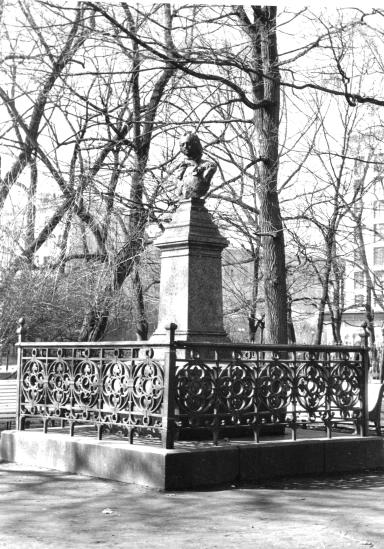 Петру I, памятник (Петровская наб.)Рубрикатор / Памятники Санкт-Петербурга/1860 - 1917 Скульптор: Жилле Николай Франсуа (1709-1791) Архитектор: Жибер Эрнест Иванович (1823-1909) Открыт 30 августа 1875 г. Материалы: бронза – бюст; гранит полированный и кованый – постамент; чугун – ограда. Надписи: на постаменте с тыльной стороны врезными знаками: 30 августа 1875 года Памятник-бюст перед Домиком Петра I сооружен в год 150-летия со дня смерти основателя города. Высочайшее повеление императора Александра II об устройстве сада с бюстом перед Домиком дано 3 июля 1875 г. Открытие памятника приурочено к празднику святого князя Александра Невского. Расходы по изготовлению бюста с чугунной оградой в сумме 28 тысяч рублей взял на себя известный петербургский благотворитель лесопромышленник И. Ф. Громов. Встречающееся в литературе имя скульптора П. П. Забелло как автора памятника не подтверждается архивными источниками. Бюст является выполненной в бронзе копией мраморного бюста Петра I работы скульптора Н. Ф. Жилле (1760 г.). Последняя, в свою очередь, — реплика известного бюста Петра I работы Б. К. Растрелли (1723 г.). Одновременно с бюстом была устроена ограда сквера с вензелями Петра I на звеньях и двуглавыми орлами на угловых столбиках. Высота бюста — 0,72 м, высота постамента — 2,53 м. Персоны
