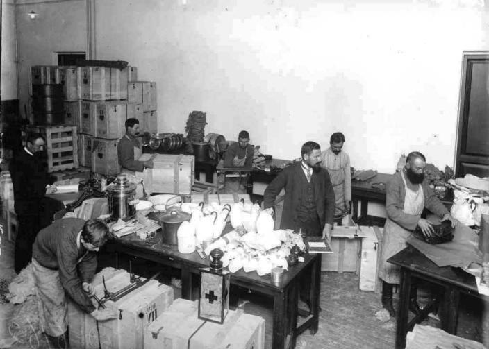 РОССИЙСКОЕ ОБЩЕСТВО КРАСНОГО КРЕСТА (РОКК)Рубрикатор / Благотворительность в Петербурге/История/Попечение о народном здравии Устав общества был утвержден императором 3 мая 1867, после чего императрица Мария Александровна приняла его под свое покровительство. 18 мая 1867 состоялось первое общее собрание учредителей, на котором избрали 25 членов Главного управления общества. Первым председателем этого органа стал министр государственных имуществ ген.-адъютант А. П. Зеленой; позже этот пост последовательно занимали ген.-адъютант А. К. Баумгартен (в 1874–1883), ген.-адъютант М. П. фон Кауфман (в 1883–1898), адмирал, ген.-адъютант Н. И. Казнаков (в 1899–1903), бывший министр Императорского двора ген.-адъютант И. И. Воронцов-Дашков (в 1904–1905), сенатор кн. А. Д. Оболенский (1906) и бывший министр путей сообщения кн. М. И. Хилков (в 1907–1908). В 1909–1917 председателем Главного управления РОКК был член Государственного Совета д.с.с. А. А. Ильин, известный историк и нумизмат. С 1880 по 1917 высочайшей покровительницей общества состояла императрица Мария Федоровна, другие члены императорской фамилии были его почетными членами. Среди членов Главного управления были видные государственные деятели, представители военной и гражданской медицины, аристократии, духовенства и купечества. Главное управление располагалось в С.-Петербурге, на Инженерной ул., 6 – в специально построенном здании (военный инженер Д. В. Покотилов). По инициативе гр. М. Ф. Шереметевой, гр. Е. В. Шуваловой, бар. В. И. Икскуль фон Гильденбанд, бар. В. Е. Врангель и других представительниц высшего света при обществе стали образовываться дамские комитеты, призванные организовывать сбор благотворительных средств, подготовку сестер милосердия, помощь раненым и больным. К 1876 таких комитетов по всей России было 36, в составе которых числилось 1200 женщин, преимущественно дворянок (адреса дамских комитетов в С.-Петербурге: Полюстровская наб., 5; Сампсониевская наб., 1; Миллионная ул., 27). В состав общества входили многие общины сестер милосердия (в 1876 их было 9, в том числе 3 – в С.-Петербурге; в 1890 – 65, в 1904 – 84). Местные управления, комитеты и общины действовали автономно, но подчинялись Главному управлению общества и были ему финансово подотчетны. В руководстве местными управлениями активное участие принимали Н. И. Пирогов, Н. А. Вельяминов, С. П. Боткин, Н. В. Склифосовский, И. П. Павлов, С. И. Спасокукоцкий, Н. Н. Бурденко и другие деятели российской медицины. При основании общества в его составе было 218 членов; через год их число в стране возросло до 2 503, в 1875 достигло 10 047 , а к концу XIX века превысило 100 000. РОКК на свои средства создавало собственные лазареты, госпитали, больницы, склады продовольствия, медикаментов, санитарно-хозяйственного имущества и т. п. В этих начинаниях руководство общества стремилось к взаимодействию с органами военно-медицинского ведомства, другими обществами и частными благотворителями. В военное время структура Главного управления заметно расширялась: создавались справочные бюро о раненых и больных, убитых и военнопленных, отделы передвижения персонала и грузов, отделы контроля, бюро печати и др. В год основания общества в его составе действовало 24 учреждения, а к концу XIX века – до 500 учреждений по всей России. Важнейшим направлением деятельности РОКК была подготовка сестер и братьев милосердия, базой для 