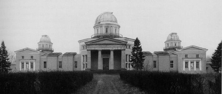 ПУЛКОВСКАЯ ОБСЕРВАТОРИЯ Главная астрономическая (ГАО) РАН (Пулковское ш., 65/1), расположена в 19 км к Ю. от центра СПб., на Пулковских высотах. Построена по проекту арх. А. П. Брюллова и открыта в 1839 (через центр гл. здания проходит Пулковский меридиан). Основатель и первый дир. - В. Я. Струве. П. о. была оснащена наиб. совершенными по тому времени инструментами. Осн. направление работ - определение координат звезд и астрономич. постоянных, наблюдения двойных звезд, а также геогр. изучение терр. России и развитие мореплавания. В 1920 П. о. начала передачу радиосигналов точного времени. В годы Вел. Отеч. войны 1941-45 обсерватория полностью разрушена. В 1946 началось стр-во новых зданий (арх. А. В. Щусев и др.), к 1954 П. о. восстановлена и значительно расширена (по оборудованию, числу сотрудников, тематике работ). Филиал П. о. - Кисловодская горная астрономич. станция (с 1948). Совр. направления исследований: небесная механика и звездная динамика; астрометрия; Солнце и солнечно-земные связи; физика и эволюция звезд; радиоастрономия; геодинамика; аппаратура и методика астрономич. наблюдений. П. о. издает "Известия" (с 1905), "Труды" (с 1869), бюллетень "Солнечные данные" (с 1954), "Астрономич. календарь" (с 2002). На вост. склоне Пулковского холма - кладб. астрономов, на к-ром похоронены О. А. Баклунд, А. А. Белопольский, С. К. Костинский, Г. Н. Неуймин и Струве, на сев. склоне - братская могила воинов-гвардейцев, погибших в янв. 1944 при снятии блокады Л., и мемориал на Пулковском воинском кладб. (1979, арх. П. Ф. Козлов, скульп. В. В. Лишев). Лит.: Витинский Ю. И. Главная астрономическая обсерватория Академии наук СССР в Пулкове. Л., 1981; 150 лет Пулковской обсерватории. Л., 1989; Главная (Пулковская) астрономическая обсерватория Российской Академии наук и ее вклад в мировую науку / В. В. Абалакин и др. // Петербургская Академия наук в истории академий мира: Материалы междунар. конф. СПб., 1999. Т. 1. С. 39-58. О. Н. Ансберг.