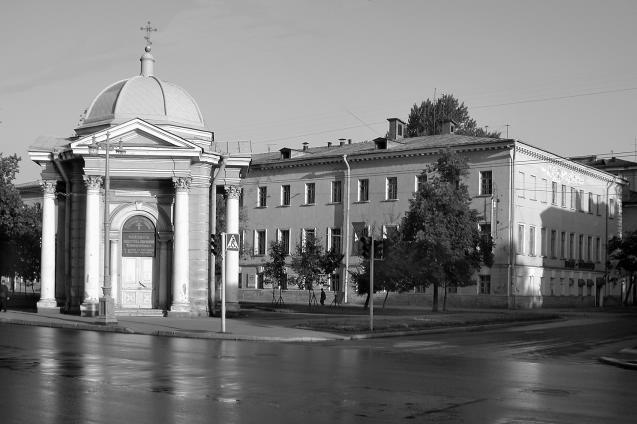 Церковь БОЖИЕЙ МАТЕРИ СМОЛЕНСКОЙ на Смоленском кладбище Финляндский л.-гв. полк Церковь сщмч. МИРОНА при лейб-гвардии Егерском полку Биржевая больница Музей отживающего культа Академия художеств Академия художеств Гаванский дворец культуры |