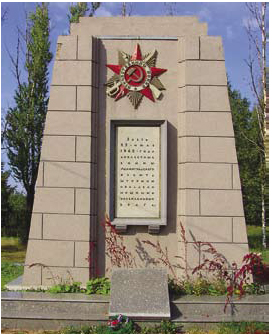 Бетонная стела в поселке Ям-ИжораНа лицевой стороне – рельефное изображение ордена Отечественной войны и поддерживаемая двумя кронштейнами профилированная доска с текстом: «Здесь 23 июня 1942 года доблестные воины Ленинградского фронта овладели мощными укреплениями врага». У подножия стелы – снаряды. В сентябре 1941 года в этом районе сражались воины 168-й стрелковой дивизии, не допустив прорыва танковых частей гитлеровцев по Московскому шоссе. Дивизия играла решающую роль в обороне города на этом направлении. Летом 1942 года бои за Ям-Ижору, превращенную противником в мощный, подготовленный к круговой обороне пункт, развернулись с новой силой. В результате этих боев войска 55-й армии нанесли серьезные потери противнику и улучшили свои позиции. Стела установлена в 1944 году, ее высота – около 7,5 метров. Автор проекта архитектор – Я. М. Зеленый. Автор созданного мемориала – архитектор А.И.Кузнецов (при участии архитектора С. Б. Сперанского). |