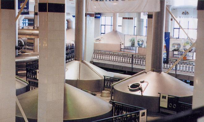 BREWERIES, intensively developing enterprises, making up a significant share of St. Petersburg industry. It was in the early 18th century that Peter the Great decreed to open breweries in St. Petersburg for the needs of the fleet and hospitals. The beer was brewed according to the Dutch recipe. Apart from public breweries, small private breweries were founded by Russian and foreign merchants, 5 to 7 workers working at each. There were 23 private breweries in St. Petersburg in the early 19th century. Although they decreased in number afterwards, the area of production facilities and the volume of production grew steadily. Breweries were owned by joint-stock companies and partnerships. Standing out against other breweries in the 19th century were Kalinkinsky Beer and Honey Works, the oldest brewery in Russia founded in 1795 and renamed into Stepan Razin Brewery; Kalashnikovsky Brewery, founded in 1811 (has not survived to this day), Bavaria, founded in 1863 and renamed into Krasnaya Bavaria Brewery, and Novaya Bavaria, founded in 1885 and transformed into Polyustrovo Mineral Water Plant. These breweries had a network of stores in the capital and storehouses in other cities distributing their products throughout the country. Beer brewed in St. Petersburg accounted for one sixth of the national volume in the early 20th century. The All-Russian Union of Brewers was founded in 1896. It set up a special school in St. Petersburg and held an international fair in Konnogvardeisky Manege in 1909. Beer production reduced during World War I of 1914-18. After breweries were nationalised in 1918, beer production was suspended to resume only in 1923. As raw materials and semi-finished products were taken under strict control during the siege of 1941-44, breweries started processing paper cellulose into edible foodstuff. Beer production resumed in 1945. Breweries produced up to 25 million decalitres of beer and soft drinks per year in the 1960s. Stepan Razin Brewery, the largest brewery in the industry, established in 1971 a group of companies, consisting of Krasnaya Bavaria Brewery, Vena Brewery, and Polyustrovo Mineral Water Plant. Baltika was another enterprise separated from Stepan Razin Combine in 1990. All breweries became joint-stock companies in 1993. The following breweries operated in St. Petersburg in 2003: Baltika Brewery, the largest enterprise in the industry in Eastern Europe, located at Sixth Passage, Ninth Block, Parnas Industrial Zone; Stepan Razin Combine of Brewing and Soft Drink Industry located at 9 Stepana Razina Street, Bavaria located at 9 Petrovsky Avenue, and Vena located at 1 Farforovskaya Street. Bravo International was a new enterprise founded at 24 Talmann Street in 2001. St. Petersburg breweries produce various brands of beer, long drinks, soft drinks, and mineral water. International beer auctions and summer beer festivals have been held annually in St. Petersburg since 1994. Reference: Довгань В. Н. Книга о пиве. Смоленск, 1995; Пиво Российской империи: Альбом. М., 1998; Пивная столица России. СПб., 2001. G. V. Klyarovskaya.