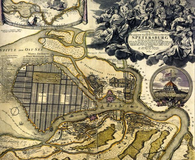 1738 Завершена работа над первым топографическим планом Санкт-Петербурга (план И. фон Зихгейма)