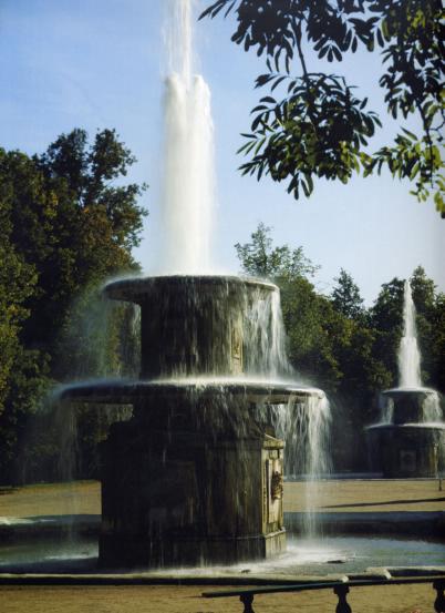 FOUNTAINS. The first fountains in St. Petersburg were laid out at the beginning of the 18th century in the Summer Garden. In 1717, the first engine was ordered (engineer Desaguliers) for their water supply and in 1717-1721 Ligovsky Canal was dug. By the second part of the 18th century over 40 fountains functioned on the territory of the Summer Garden (all of them were destroyed by the flood of 1777 and were not restored). By 1917, there were about 300 fountains in St. Petersburg: in the gardens of the Anichkov and the Elagin Palaces, St. Alexander Nevsky Lavra, in city manors, on the facades of the buildings, in the yards and public gardens (few examples have survived). In 1935, a granite fountain with a mask of an old man was moved from Pulkovskoe Freeway to the public garden in front of the grille of the Kazan Cathedral. In 1950, the Neptune fountain was transferred to the Moscow Park of Victory (both fountains date back to 1809, architect J. F. Thomas de Thomon, craftsman G. Grauer). On Pulkovskoye Freeway the Grotto fountain has survived (1807, architect A.N. Voronikhin) and the four sphinxes (1808, architect Thomas de Thomon). On the facade of the house of P.N. Demidov at 43 Bolshaya Morskaya Street there is the Shell fountain (1836-1840, architect A.A. Montferrand, sculptor T.N. Jacques). In front of the main building of Army Medical College at 6 Akademika Lebedeva Street the Gigeya Fountain stands (1872-1873, sculptor D.I. Jensen): the statue is placed on a cast-iron vase with a granite boulder. The fountain with the figure of a naiad adorns the public garden of the mansion of F.K. San Galli at 62 Ligovsky Avenue (1870s, architect I.I. Gornostaev). At the end of the 19th century large fountains in the Alexandrovsky Garden were arranged - in front of the tower of the Main Admiralty (1877-1879, architects I.A. Merz, A. R. Geschwend), in front of the colonnade of Kazan Cathedral (1899-1900, craftsmen R.F. Katzer, P. I. Wiese), in the garden of the Winter Palace from the side of the Main Admiralty (1896-1901, architect R.G. Schmeling, craftsman R. Kuphaldt). Fountains by the Smolny (architects V.A. Shchuko, V.G. Gelfreich), the "monument to a dog" in the garden of Scientific Research Institute of Experimental Medicine at 12 Akademika Pavlova Street (artist-architect I.F. Bezpalov), fountains in the Necropolis of Art Masters at 1 Alexander Nevsky Square (architects L.A. Ilyin, E. N. Sandler) are typical of Stalin-classicism of the 1930s. One of the largest city fountains - Slava is in the Moskovsky Park of Victory (1950s): a pool with a central 12-metre stream, along the perimeter 24 tulip water jets is set. The fountain in the memory of the defenders of the Khanko Peninsula was constructed in 1941 at 11 Pestelya Street (1950s, architect V.A. Kamensky, A.A. Leyman). On the stadium named after S.M. Kirov multi-step cascades and a pool with a fountain decorate the front staircase (1980, architect A.G. Lelyakov). In the course of the creation of pedestrian zones in St. Petersburg centre fountains on Manezhnaya square, Clock-globe on Malaya Sadovaya Street, River of Time (with the sculpture of a boy) at Belinskogo Bridge and others appeared. Reference: Раскин А. Г. Поэтичное украшение города: Продолжить традиции фонтанного искусства // СиАЛ. 1976. № 12. С. 38-43. A. A. Alexeev.