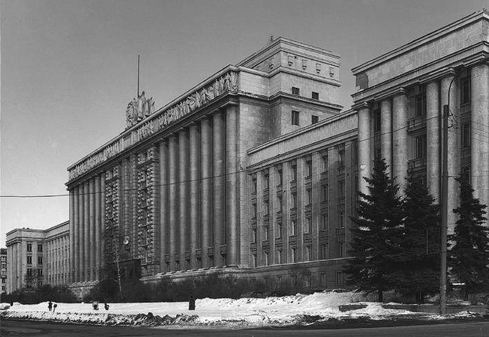 HOUSES OF SOVIETS. A new type of social (administrative) buildings, designed by Soviet architects to house local (district) government organs, including the executive committee of the district council (and services subjected to it), and sometimes for local post office departments, bank, or other institutions. In the first half of the 1930s, the Kirovsky District Council (18 Stachek Avenue; 1930-35, architect N.A. Trotsky) and the Moskovsky District Council (129 Moskovsky Avenue; 1930-1935, architects I.I. Fomin, V.G. Daugul, B.M. Serebrovsky) were housed in buildings designed in the Constructivist style, which were erected despite the face that their decoration suffered from the "enrichment" of Classical details. Both buildings utilised the contrast between high elongated forms and solid ribbon windows. The architecture of the Nevsky District Council building (163 Obukhovskoy Oborony Avenue; 1939-40, architects E.A. Levinson, I.I. Fomin) was marked by details in the Academic style, which is also features a ribbon building structure, not unlike the later Kalininsky District Council building (1 Lenina Square; 1955, architects N.V. Baranov, N.G. Ageeva, G.I. Ivanov). The All-Municipal House of Soviets building is actively opposed to having any sort of "background" (1936-1941, architect Trotsky among others), and is positioned on an island on Moskovskaya Square. Though it was not used for its original purpose, it has had significant architectural significance for the entire district. Council buildings were built on the city's outskirts; in central districts, old buildings were utilised for administrative needs. In the 1970s-80s, buildings for the Zhdanovsky, Krasnoselsky, Pushkinsky, and Frunzensky district councils were erected together with the mass residential houses. Examples of reconstruction and enlarging of administrative buildings in the city's older parts is interesting to note, particularly on the Petrogradskaya and Leninskaya parts. Since 1991, as a general rule, district council buildings have housed newly elected organs of city administration. References: Микишатьев М. Н. Дома Советов: образные решения // ЛП. 1986. № 11. С. 16-18. M. N. Mikishatiev.