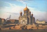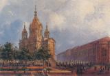 Presentation of the Holy Virgin Church in Semenovsky Regiment. Lithograph by J.Jacotte from the drawing by I.I.Charlemagne. 1850s.