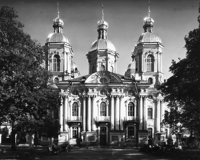 ST. NICHOLAS' NAVAL CATHEDRAL, St. Nicholas Cathedral of Epiphany, located at 1-3 Nikolskaya Square. An architectural monument in the Baroque style. Built in 1753-62 by architect S. I. Chevakinsky on the naval regimental grounds on the site where a wooden church had once stood, the church holds 5,000 people. A separately standing four-tier belfry crowned with a high spire was built in 1755-58. The cross-shaped building of St. Nicholas' Naval Cathedral is decorated with Corinthian columns with clustered tops, moulded window-frames and a wide entablature. The Cathedral is crowned with five gilded cupolas. Balconies with tracery wrought railings add to the dynamic decor of the facade. The St. Nicholas Church with three side-altars is located on the ground floor, and the single-altar Epiphany Church is on the upper level. The 18th century iconostases, carved by I. F. Kanaev and S. Nikulin, have been preserved. The brothers Kolokolnikov painted the icons: Fedot Kolokolnikov in the Upper church, and Mina Kolokolnikov in the Lower church. During consecration, the cathedral was named Naval; the victories of the Russian Navy were celebrated here. The most revered church treasure was the icon of St. Nicholas, dating to the 17th century, with some of his relics. In 1870, the cathedral established a charitable society with a school, a hospital, an orphanage and a women’s hospice. After October 1917, St. Nicholas' Naval Cathedral continued to be in service and in 1941-99 functioned as the main metropolitan cathedral. It gave its name to Nikolskaya Square, Nikolsky Lane, Nikolsky Market and Nikolsky Bridge. A chapel in the lower tier of the belfry was consecrated in 2000. References: Антонов В. В., Кобак А. В. Святыни Санкт-Петербурга: Ист.-церков. энцикл. СПб., 1994. Т. 1. С. 110-112; Сойко Б. И., Шкаровский М. В., Исакова Е. В. Николо-Богоявленский кафедральный Морской собор: (Ист. очерк). СПб., 1998. V. V. Antonov.