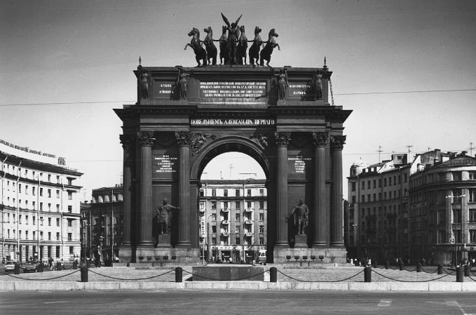 STACHEK SQUARE, known as Narvskaya Square until 1923, at the intersection of Stachek Avenue, Narvsky Avenue and Staro-Petergofsky Avenue. The square assumed the present-day name in commemoration of the strike movement (the name of the square literally translates as "Square of Strikes") of the workers of Narvskaya Zastava. The square was built in the 18th century. In 1813, it was the place where St. Petersburgers followed the coffin with M.I. Kutuzov's body. In 1814, a wooden triumphal arch was built on the square to greet the guard regiments returning to St. Petersburg after taking part in the Patriotic War of 1812 and foreign campaigns of 1813 and 1814 across Europe. In 1827-34, the Narva Triumphal Gate was erected to become the compositional focus of the square. On January 9 1905, the square was the scene of a massacre: the imperial troops together with the police fired on a peaceful demonstration of workers of Narvskaya Zastava on the square (see Bloody Sunday). In 1924, architect L.A. Ilyin developed a plan for the reconstruction of this district, which provided for the formation of a single town-planning complex, divided into two centres based on a utilitarian principle: the cultural, educational and commercial centre was to be set on Stachek Square, while Kirovskaya Square was to accommodate the administrative centre. In 1925-27 Moskovsko-Narvsky Cultural Centre was built on Stachek Square (house No. 4, later called Gorky Recreation Centre) (architects A.I. Gegello, D.L. Krichevsky, engineer V.F. Raylyan); in 1929-30, a mechanised canteen and the Kirovsky Department Store were constructed (house No. 9/3, architects A.K. Barutchev, A.I. Gilter, I.A. Meerzon, Y.O. Rubanchik, engineer A.G. Dzhorogov). All these structures serve as striking architectural examples of constructivism. In 1955, the hall of Narvskaya Metro Station was built here in the manner of Stalinist "Socialist Classicism" (architects A.V. Vasilyev, D.S. Goldgor, S.B. Speransky). The limits of Stachek Square also extend over the school building of the Tenth Anniversary of October 1917 School (No. 11, 1925-27, architects A.S. Nikolsky, A.V. Krestin), shaped as sickle and hammer in the plan, and house No. 1/3 (1970s, architects V.A. Kamensky, G.L. Ashparyan). Both buildings are located at the beginning of Stachek Avenue, where it runs off from Stachek Square.