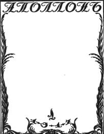 APOLLON (Apollo), a literary journal. It was founded in 1909 by critic S. K. Makovsky, and named after the Ancient Greek God of Sun, Light and Art. In 1909-10 it came out on a monthly basis as a supplement of the Literaturny Almanakh, afterwards with the frequency of ten editions a year. The editorial office was located at 24 Moika River Embankment, later - at 26 Razyezzhaya Street. I. F. Annensky, А. N. the Benois, Vyacheslav I. Ivanov, critic А. L. Volynsky developed the journal's concept. Among others Аlexander А. Blok, V. Y. Bruce, Мaximilian А. Voloshin, М. А. Kuzmin, Nikolay. S. Gumilev, G. I. Chulkov, B. М. Eichenbaum, B. V. Tomashevsky, art critics and artists L. S. Bakst, N. N. Vrangel, М. V. Dobuzhinsky, N. N. Evreinov, V. E. Meyerhold, N. N. Punin contributed to the Apollon. The journal became a discussion panel for contemporary literature, painting, architecture, music, dance, prosody and literary translation issues. The journal published a lot of copies of the works of Russian and international artists and articles about them. The chronicle of Аpollon gives an extensive record of Russian (especially St. Petersburg's) and European contemporary cultural life. Until 1913 Apollon predominantly focused on symbolism; in January of 1913 it published the Manifestos of Acmeism by Gumilev and S. M. Gorodetsky, yet welcoming adherents of various literary trends. The Apollon's editorial office (24 Moika River Embankment; 8 Razyezzhaya Street) used to host meetings of the Society for the Zealots of the Poetic Word (Poetry Academy). In 1917 the printing of Apollon was ceased. References: Корецкая И. В. Аполлон // Русская литература и журналистика начала XX в., 1905-1917: Бурж.-либер. и модернист. изд. М., 1984; Бунатян Г. Г., Чарная М. Г. Петербург Серебряного века: Дома, события, люди. СПб., 2002. С. 108-130. T. M. Dvinyatina.
