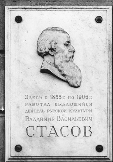 Стасов В.В., (1824-1906), критик, общ. деятельРубрикатор / Энциклопедический словарь/Литература. Книжное дело/Персоналия Лит.: Лебедев А. К., Солодовников А. В. Владимир Васильевич Стасов: Жизнь и творчество. М., 1976; Салита Е. Г. Стасовы в Петербурге - Петрограде. Л., 1982; Голубева О. Д. В. В. Стасов. СПб., 1995. О. Л. Лейкинд, Д. Я. Северюхин. Авторы