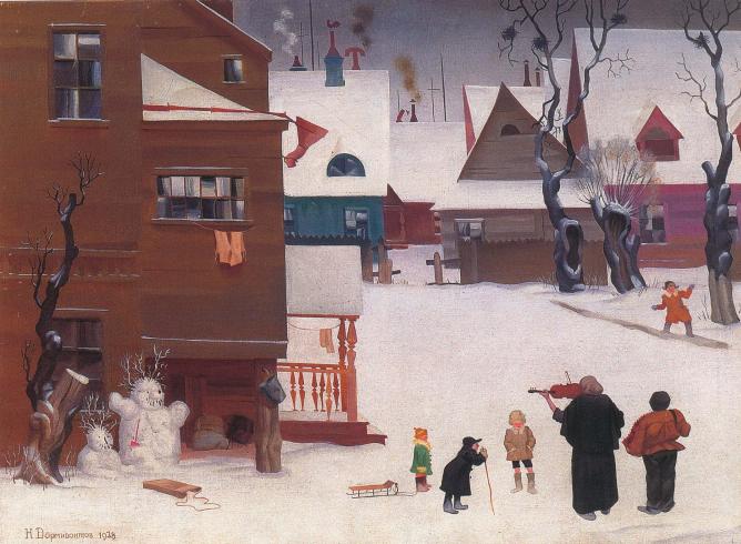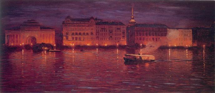 ST. PETERSBURG IN THE FINE ARTS. Artists started to make representations of St. Petersburg soon after the city's founding. Alexey Zubov was the first to create the panoramic view of St. Petersburg (1716) which combined topographic accuracy with Baroque spirit and reality with idealism. In the middle of 1720s, Christophor Marselius and Ottomar Elliger had by far more transparent views of cityscapes. Drawings by Fedor Vasilyev are remarkable for their realism (SS Simon&Anna Church, 1719). The most complete picture of St. Petersburg of the mid-18th century was done by Mikhail Makhaev in his album of etchings, which was also reproduced in paintings. Makhaev represents the city of Rastrelli with splendid mansions, the expanse of the Neva and fine shades of colour and light. Although architecture was the main subject matter, the pictures present a lot of every day details. From the late18th century, an integral and poetic view of the city replaces portraits of buildings (landscapes by Semen Shchedrin, Benjamin Patersen and Fedor Alexeev). Painters provide an artistic and emotional image of St. Petersburg; live genre scenes replace staffage. Series of lithographic views appeared in the early 19th century, the most notable of them is The Collection of Views of St. Petersburg and its Surroundings (1821-26) by Maxim Vorobyev, Stepan Galaktionov, Karl Bryullov, et al, and lists by Evgraf Martynov, Ivan and Peter Ivanov. The Panorama of Nevsky Prospect by Vasily Sadovnikov, published in 1830-35, combines architectural accuracy with details of real modern life which play an almost equal role as the architectural landscape. Vasily Sadovnikov, Iosif Charlemagne and Ludwig Premazzi represented gala Petersburg in watercolours. The everyday city is presented by F. Bragantz in the same medium. John Atkinson (1800-05), Angelo Tozelli (1817-20) and Giuseppe Bernardazzi (1850) continued the tradition of overview panoramas. Vorobyev started to depict the city in a particularly realistic manner (The Tip of Vasilyevsky Island, 1830s). This emotional and individual style was long dominating St. Petersburg iconography. The most interesting paintings in this respect are by Pavel Fedotov (A Winter Day, 1840s), Fedor Vasilyev (The Daybreak in St. Petersburg, 1869-71), Vasily Surikov (The Senate Square in Winter Night, 1871) and Alexander Beggrow (A View of the Neva, 1881). In 1890s, however, St. Petersburg almost disappeared from painting, as the city had become the symbol of official bureaucracy. Artists of the World of Art managed to break this bias down and praise the beauty of classical Petersburg, but they also contributed tragic, grotesque and symbolic elements, which is specifically characteristic of Mstislav Dobuzhinsky. The originality of St. Petersburg of the18th century was reflected by Alexander Benois and Evgeny Lansere who created the retrospective style of the city's pictures, which, however, had no further development. Anna Ostroumova-Lebedeva preferred to present classic St. Petersburg in her xylographs and watercolours showing the eternal and timeless city. The same trend prevails in Pavel Shillingovsky's album Petersburg. Ruins and Revival (1923) which together with Dobuzhinsky's Petersburg in 1921 became a kind of requiem to the former imperial capital. Most attempts to create a new revolutionary image of Petrograd - Leningrad failed, though they were taken by such prominent artists as Boris Kustodiev, Dmitry Mitrokhin, Anna Ostroumova-Lebedeva, and Vladimir Konashevich. The return to classical cityscapes in Fauvist landscapes by Osmerkin and impressionist pictures of Nikolay Lapshin and Alexander Grinberg was much more successful, but their works do not reflect the hardships of the 1930s (except for the views of the outskirts by Boris Ermolaev). Tragic everyday life is fully depicted in blockade etchings of eyewitnesses Alexey Pakhomov and Solomon Yudovin. After the war, the classic tradition was continued and enriched with a lyrical touch (Alexander Vedernikov, Alexander Zaytsev and Leonid Khizhinsky), but metaphysical (Yakov Krestovsky and Dzovinar Bekaryan) and surrealistic (Vilner) arose in 1970s. Artists were looking for unknown spots of the city and unusual perspectives (Yury Tulin and M.A. Kanaev). Etchers Andrey Ushin and Oleg Pochtenny celebrated social and revolutionary Leningrad. From 1970s, official optimism and professional patterns were resisted by informal artists with their tragic mood and expressive artistic manner. They treated the city as a subjective reflection of their own personality.