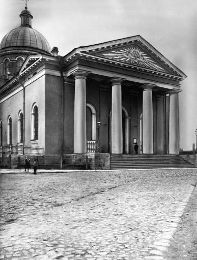 Церкви СОШЕСТВИЯ СВЯТОГО ДУХА и ПОКРОВА ПРЕСВЯТОЙ БОГОРОДИЦЫЧасовня на Охте отмечена уже в 1717, а через пять лет жители просили разрешения выстроить храм. В 1725 сделанная „из старого леса“ церковь была готова и освящена во имя св. Иосифа Древодела (Обручника), покровителя плотников, и свт. Николая Чудотворца. В 1727 охтяне заложили новую деревянную церковь, но спустя два года, не кончив ее, принялись по проекту М. Г. Земцова возводить каменную трехпридельную во имя Пресвятой Троицы, освященную 3 октября 1731. Иоганн Праур вырезал для нее иконостас, Андрей Ковашихин и Андрей Мелентьев написали образа, к которым в конце века добавили иконы, привезенные из Новгородской губернии. Так как Троицкий храм, при котором имелось кладбище, был холодным, то в 1740 по проекту того же Земцова восточнее была выстроена из дерева теплая Покровская церковь. Ее заменили в 1746–1748 каменным храмом с деревянным верхом. Иконостас сделали охтинские резчики. В 1825 к храму была пристроена колокольня. В 1843–1844 провели капитальный ремонт церкви и заменили иконостас новым работы Егора Лукина. С середины XIX века богослужения в Покровской церкви бывали всего шесть раз в год, а в 1889 ее „из-за ветхости“ закрыли. Правда, после основательного обновления, храм 1 октября 1897 был снова освящен, но служили в нем только по праздникам, разместив в трапезной приходскую школу. Троицкая же церковь, простояв сто лет, в 1837 была разобрана. Через год, в Покров, чуть западнее прежнего места, началась постройка нового однокупольного с ампирным портиком храма с отдельной трехъярусной колокольней. Автор проекта пока не установлен. Храм строился с трудом – в 1840 деньги кончились, и приходу пришлось взять ссуду. 15 октября 1844 митрополит Антоний освятил его во имя Сошествия св. Духа. Местные резчики изготовили для всех трех приделов замечательные иконостасы, поставив в них образа из прежней церкви. Оттуда же взяли красивую надпрестольную сень (ныне в ГРМ) и чтимую икону св. Иосифа Древодела, которую, по преданию, Петр I подарил из своего дворца. Супруги Угрюмовы ко дню освящения пожертвовали серебряную дарохранительницу, а десять лет спустя – золоченые сосуды работы Ф. А. Верховцева. Регулярно – в 1876–1877, когда появилась роспись – в 1894, 1903 и 1914, в храме производился ремонт. Его последним перед революцией настоятелем был прот. Михаил Николаевич Славнитский. Охтяне были очень набожными людьми: каждый новый дом освящался с молебном при участии местной иконы Смоленской Божией Матери. 28 июля ее носили по улицам, направляясь затем к минеральному источнику и часовне в Полюстрове. Почитанием пользовалась также икона Божией Матери „Всех скорбящих радости“, перед которой в 1876 исцелилась парализованная старушка. При водосвятии крестный ход шел от церкви к Неве. Кроме Георгиевской церкви на кладбище (cм. церковь вмч. ГЕОРГИЯ ПОБЕДОНОСЦА на Большеохтинском кладбище), к храму было приписано несколько часовен. Каменными были Троицкая (1844) часовня в ограде и св. Иосифа (1903–1904, арх. О. Л. Игнатович), шатровая – на месте первой церкви; деревянными – Ильинская, близ перевоза, Успенская (1848) на углу Медведевой улицы и Захарова переулка, Георгиевская на углу Георгиевской улицы и Среднеохтинского проспекта. Еще одна каменная Никольская часовня была воздвигнута в 1880 Н. Л. Бенуа на Большеохтинском проспекте, 19. Автором дере