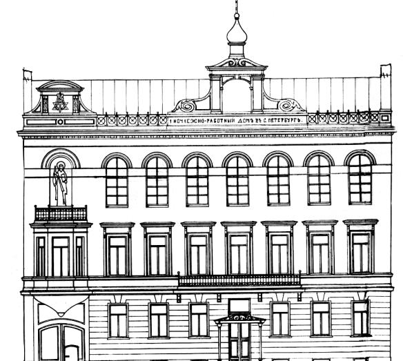 Церковь свт. НИКОЛАЯ ЧУДОТВОРЦА при 1-м ночлежно-работном доме для бесприютных детейПримеру Императора последовал купец И. И. Рубахин, давший на домовую церковь 15 тыс. руб. Для ее размещения на третьем этаже здание было повышено, в нем сделана отдельная лестница, на крыше – звонница с главкой. Проект переделок составил зодчий А. И. фон Гоген. На фасаде, в киоте, был изображен благословляющий детей Христос. Церковь освятил 3 декабря 1906 епископ Ямбургский Сергий при участии о. Иоанна Кронштадтского. Иконы в двухъярусном белом иконостасе написаны были в мастерской А. А. Маркичевой. Запрестольный образ „Божия Матерь с Предвечным Младенцем“ являлся копией известной работы В. М. Васнецова во Владимирском соборе в Киеве. Его подарил художник С. И. Садиков. Витраж с изображением Спасителя был пожертвован компанией П. Франка. Старинный образ Христа в серебряном окладе с мощевиком поступил от А. А. Козлова, иконы св. Пантелеимона и Божией Матери „Знамение“ – от афонского игумена Парфения. За полмесяца до освящения в доме была открыта школа, позже отделение приюта появилось на даче в Гатчине. Дому принадлежала тумба-часовня с образом свт. Николая, стоявшая на углу Забалканского проспекта и 1 й роты. Священником перед революцией служил о. Феодор Павлович Устименко. Церковь закрыта 13 января 1922 и через два года разорена, иконостас распилили на дрова. Дом надстроен этажом и приспособлен под жилье. Архивные источники РГИА. Ф. 796. Оп. 187. Д. 2719; Ф. 835. Оп. 1. Д. 657. ЦГИА СПб. Ф. 513. Оп. 102. Д. 3822. Литературные источники Отчет Попечительного общества о Первом ночлежно-работном доме… за 1906 год. СПб., 1907. С. 10–12. Краткий обзор деятельности Попечительного общества о Первом ночлежно-работном доме… СПб., 1911. С. 4. Черепенина, Шкаровский. 1999. С. 171–172. Периодика ВБ. 1902. № 9. С. 81–82. Зодчий. 1904. № 40. С. 448. ВПГ. 1906. № 249, 264. ПЛ. 1904. № 233, 265; 1906. № 122, 296. Авторы