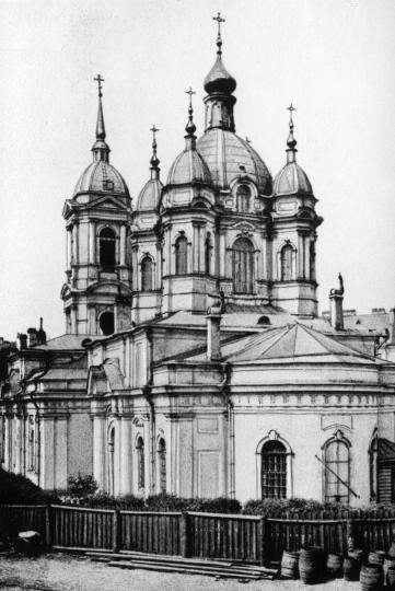 Церковь ап. МАТФИЯ (Покровская)Поскольку названная однопрестольная церковь была холодной, вскоре рядом появилась теплая Покровская, восстановленная и освященная 29 октября 1754 после пожара. Простояв около полувека, она обветшала, и Л. И. Миллер, ученик Баженова, в конце 1790-х взялся за постройку двухпридельного пятикупольного каменного храма с деревянной колокольней. 1 октября 1800, в престольный праздник, состоялось его освящение. Старый иконостас при этом был сделан двухъярусным. В июне 1806 по предложению Л. Руска разобрали и Матфиевскую церковь, которой пользовался Литовский полк, а вместо нее, к Покровской, пристроили слева одноименный придел, давший всей церкви другое название – Матфиевская. Первый большой ремонт в здании был проведен в 1842, когда в Покровском приделе поставлен новый иконостас. Второй ремонт был связан с некоторым изменением интерьера: в 1862–1863 по проекту А. И. Егорова был устроен новый купол, переделаны алтарь и пилоны. Лепные украшения исполнил И. Балин, иконостас – Н. А. Леонтьев, новые образа написал К. В. Лемох. В 1884 храм был несколько расширен, а чуть позже, в 1889–1890, Г. И. Карпов пристроил к нему два придела, каменную двухъярусную колокольню и удлинил трапезную, после чего здание стало вмещать более 1000 человек. В 1899 прихожане поставили в алтаре витраж с изображением Воскресения Христова; в 1910 интерьеры украсили резные киоты с иконами кисти Е. Т. Иванова. В Матфиевском приделе стоял темно-голубой барочный иконостас с золочеными резными колонками, который датировался началом XVIII века и происходил из первого Петропавловского собора (в 1875 его хотели заменить копией). В этом приделе со временем намеревались собрать все старинные храмовые иконы. Два образа в храме приписывались известным мастерам: „Ап. Андрей Первозванный“ – А. П. Лосенко, „Свт. Василий Великий“ – В. Л. Боровиковскому. В отдельном застекленном киоте хранилось несколько серебряных крестов-мощевиков XVIII века. Напрестольное старинное Евангелие было украшено красивым серебряным окладом в стиле барокко. В конце XVIII века прихожанкой церкви была блаж. Ксения Петербургская, жившая неподалеку. Здесь же ее отпевали. У церкви было две часовни: одна на углу, в ограде, другая (1879, арх. Г. А. Соловьев) – на Сытном рынке; к последней в праздник Тихвинской Божией Матери шел крестный ход. С 1910 при храме действовало Братство ревнителей православия во имя Христа Распятого во главе с известным миссионером Д. И. Боголюбовым, а с 1914 – миссионерское братство Воскресения Христова, первое такого рода в городе. Работало также благотворительное общество, содержавшее женскую богадельню и приют, общество трезвости, издававшее журнал „Трезвые всходы“. Последним (с 1915) настоятелем церкви был прот. Николай Никанорович Сперанский, расстрелянный в 1918 году. Епархиальный архитектор А. П. Аплаксин по заказу Союза русского народа разработал в 1912 проект Дома просветительных учреждений (в честь 300-летия Дома Романовых) с Никольской церковью на 600 человек на втором этаже. Его предполагалось возвести вблизи Матфиевской церкви, но из-за начавшейся войны проект остался на бумаге. В конце 1919 на Б. Пушкарской ул., 57а, был открыт молитвенный дом, приписанный к храму. В нем поставили иконостас, взятый из упраздненной Спасской церкви (см. церковь СПАСА НЕРУКОТВОРНОГО ОБРАЗА при приюте Господа наше