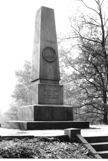 Героям Октябрьской революции, памятникРубрикатор / Памятники Санкт-Петербурга/1917 – 1991 Архитектор: Визенталь Юрий Александрович ((1913-1961) Открыт в 1953 г. Материалы: гранит серый, кованый – обелиск, плита; бронза – накладной медальон. Надписи: на постаменте обелиска врезными тонированными знаками: Вечная память / героям / Октябрьской / революции; на плите: Красногвардейцы / завода «Новый Лесснер» / павшие в боях против / контрреволюционных войск / под Пулковом в октябре 1917г. / Глазунов Алексей 1897г. / Кузнецов Иван 1897 г. / Поляков Алексей 1897 г. / Дмитриев Алексей 1899 г. / Кузьмин Петр 1899 г. /Алексеев Петр 1900 г. / Богданов Андрей 1891 г. / Бабков Яков / Вечная память героям / Великой Октябрьской / социалистической / революции! В парке Лесотехнической академии были похоронены красногвардейцы, погибшие в октябре 1917 г. в боях с войсками Керенского под Пулковом и Красным Селом, позже — другие участники Гражданской войны. Первоначально в 1927 г. на братской могиле на холме был установлен временный памятник, выполненный из дерева по проекту архитектора И. А. Фомина. В 1953 г. заменен гранитным обелиском. В 1967 г. установлена плита с именами погибших. Высота памятника — 5,5 м. Персоны