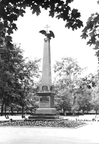 Броненосцу «Император Александр III», памятникРубрикатор / Памятники Санкт-Петербурга/1860 - 1917 Скульптор: Обер Артемий Лаврентьевич (1843-1917) Архитектор: Филотей Яков Иванович (1875-1920-е) Открыт 15 мая 1908 г. Материалы: гранит красный и черный, полированный — обелиск, постамент; бронза — декоративные украшения, текстовые доски. Подписи: на барельефе с изображением броненосца внизу, в правом углу: А.Оберъ; на нижней ступени стилобата со стороны собора: Томсонъ — Фуло / Троицкая ул., 4. Надписи: на северной стороне в медальоне литыми знаками старославянского начертания: Больши / сея любве никтоже / имать, да кто душу / свою положить за /други своя / Еванг. Иоанна XV. 13”; на западной стороне в медальоне: Героям / Броненосца / Император / Александр III / Гвардейский / Экипаж; на текстовых досках, расположенных на гранях обелиска, перечислены имена погибших моряков. Памятник посвящен морякам броненосца «Император Александр III», погибшим во время Цусимского боя 14—15 мая 1905 г. в составе 2-й Тихоокеанской флотилии. Вскоре после этого скорбного события на собрании офицеров Гвардейского экипажа было решено приступить к сбору средств на сооружение памятника погибшим. Осенью 1907 г. офицер Гвардейского корпуса полковник М. С. Путятин представил проект и рисунок памятника, получивший одобрение императора. Заказ на исполнение получил Архитектор Я. И. Филотей, владелец мастерской по изготовлению монументов, скульптурные работы выполнил скульптор А. Л. Обер. В третью годовщину со дня Цусимского сражения 15 мая 1908 г. состоялось торжественное открытие памятника. Общая высота памятника — 8,5 м. Персоны