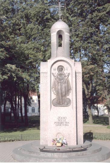 2000-летию Христианства, памятникРубрикатор / Памятники Санкт-Петербурга/1991 - по настоящее время Автор: Соловьева Эвелина Павловна (род. 1937) Открыт 18 апреля 2001 г. Материалы: гранит серый — основной объем памятника; бронза — крест-навершие, рельефы на трех гранях памятника. Надписи: врезными золочеными знаками на лицевой стороне под рельефом-изображением Богоматери Оранты: 2000 / лет от / Рождества / Христова; на левой стороне под рельефом-изображением Младенца Христа в яслях: Тропарь, глас 4 / Рождество Твое, / Христе Боже наш, / возсия мирови / свет разума в нем бо / звездам служащий / звездою учахуся Тебе / кланятися, Солнцу / правды, / и Тебе ведети / с высоты Востока, / Господи, / слава / Тебе!; на правой стороне под рельефом, изображающим Ангелов возвещающих: Кондак, глас 3 / Дева днесь / Пресущественнаго /рождает, и земля вертеп / Неприступному приносит. / Ангели с пастырьми / славословят, волсви же / со звездою путешествуют, / нас бо ради родися / Отроча младо, / превечный / Бог на тыльной стороне под рельефом Креста на Голгофе: Свято-Троицкой / Александро-Невской лавры / дар / от творческой группы и / ЗАО Камнеобрабатывающего / завода «Возрождение». Проект памятного знака разработан творческой группой в составе художника-графика Э. П. Соловьевой, архитектора О. С. Романова, искусствоведа А. Г. Раскина и координатора по связи с Лаврой А. И. Сердитовой. Проект получил благословение Митрополита Санкт-Петербургского и Ладожского Владимира. Гранитные работы велись на ЗАО «Возрождение». Рельефы в бронзе отлиты по моделям Э. П. Соловьевой. Высота памятника — 5 м. Персоны