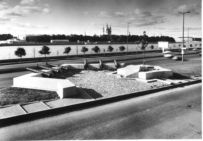 Крепости Ниеншанц, памятникРубрикатор / Памятники Санкт-Петербурга/1991 - по настоящее время Автор идеи: Сорокин Петр Егорович (род. 1962) Архитектор: Реппо Владимир Александрович (род. 1951) Открыт 15 июня 2000 г. Материалы: гранит серый, кованый — памятный знак; чугун — пушки. Подписи: с тыльной стороны памятника врезными тонированными знаками: Петр Сорокин Владимир Реппо 2000 год / дарители Givare / Приппс Pripps / Сканска Skanska / Хандельсбанкен Handelsbanken / Дагенс Индустри Dagens Industri / Поддержка проекта Projekts Tod / Хассе Уильсон Hasse Olsson / Ханс Якоб Бонниер Hans Jacob Bonnier / князь Рикард Knyaz Rikard Надписи: врезными знаками: Памятник археологии – крепость Ниеншанц / Здесь, при впадении Охты в Неву, в 1300–1301 г.г. располагалась крепость Ландс- / крона, в XIV–XVI в. в. существовало русское торговое поселение Невское устье. / Крепость Ниеншанц была сооружена в 1611 г. по приказу шведского короля / Густава II Адольфа. В конце XVII столетия Ниеншанц представлял собой земляную / цитадель в форме пятиконечной звезды с тремя бастионами между Невой и Охтой. / В 1703 г. после недельной осады русскими войсками под командованием Петра I / и фельдмаршала Б.П. Шереметева Ниеншанц был взят и переименован в Шлотбург. / Здесь принято решение строить новую крепость Санкт-Петербург на Заячьем острове в устье Невы. В 1998 г. территория крепости объявлена памятником археологии / Nyenskans 1698 Ниеншанц / Нelmfelts Bastion А Гельмфельтов бастион / Сvarn Bastion В Мельничный бастион / Gamblе Вastion С Старый бастион / Dodhe Bastion D Мертвый бастион / Carolus Bastion Е Карлов бастион / Stora Portz-Ravellin F Большой воротный равелин / Lilla Portz-Ravellin G Малый воротный равелин / Desseinerat vдrck Н Намеченные укрепления / Svдnske Doomkyrckian I Шведская кафедральная церковь / Tudhske Kyrckian K Немецкая церковь / Camble Rads-Huuset L Старая ратуша / Nva Rads-Huuset M Новая ратуша / Svдnske Sconle N Шведская школа / Stads-Waghuuset O Городские весы / Smal Back P Малый ручей / Сronans Spannemahls-Boodh Q Королевские хлебные амбары / Сronans Materialgardh R Королевский складской двор / Gammal Crone-Boodh S Старые королевские амбары / Soldate-Baracquer T Солдатские казармы / Gammal Vдrck V Старые укрепления”. Памятный знак на месте шведской крепости Ниеншанц создан по инициативе и на средства Северо-западного филиала Российского научно-исследовательского института культурного и природного наследия, проводившего раскопки на Охте. В создании памятника принимали участие граждане Швеции и шведские фирмы. В соответствии с распоряжением губернатора Санкт-Петербурга памятный знак «предназначен для обозначения местоположения памятника археологии — крепости Ниеншанц». Установлен на месте одного из бастионов крепости, взятой штурмом русскими войсками 1 мая 1703 г. в ходе Северной войны. Персоны